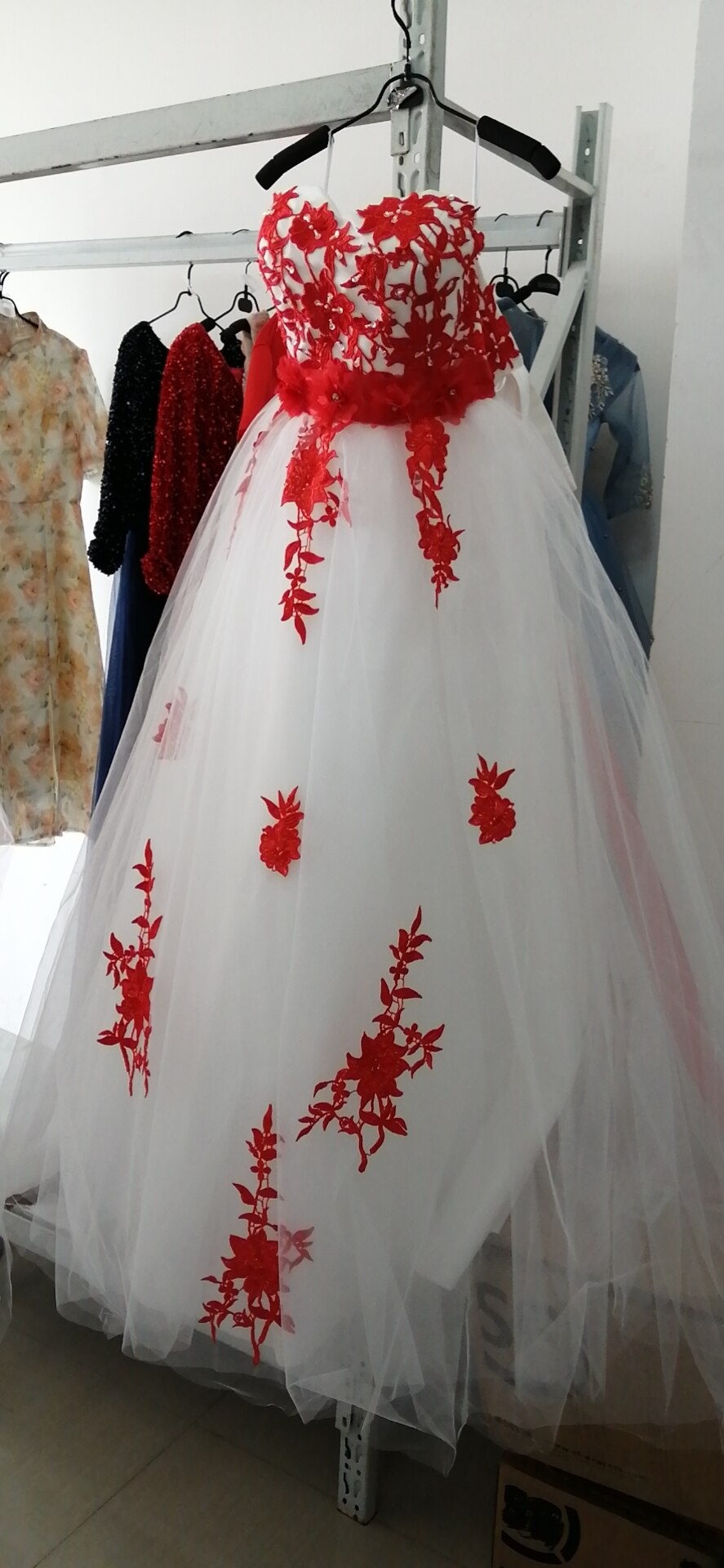 runhufu RED Blacck Vestido De Gowns Lace Back Embroider Appliques Starpless Wedding Dress Short Sleeves