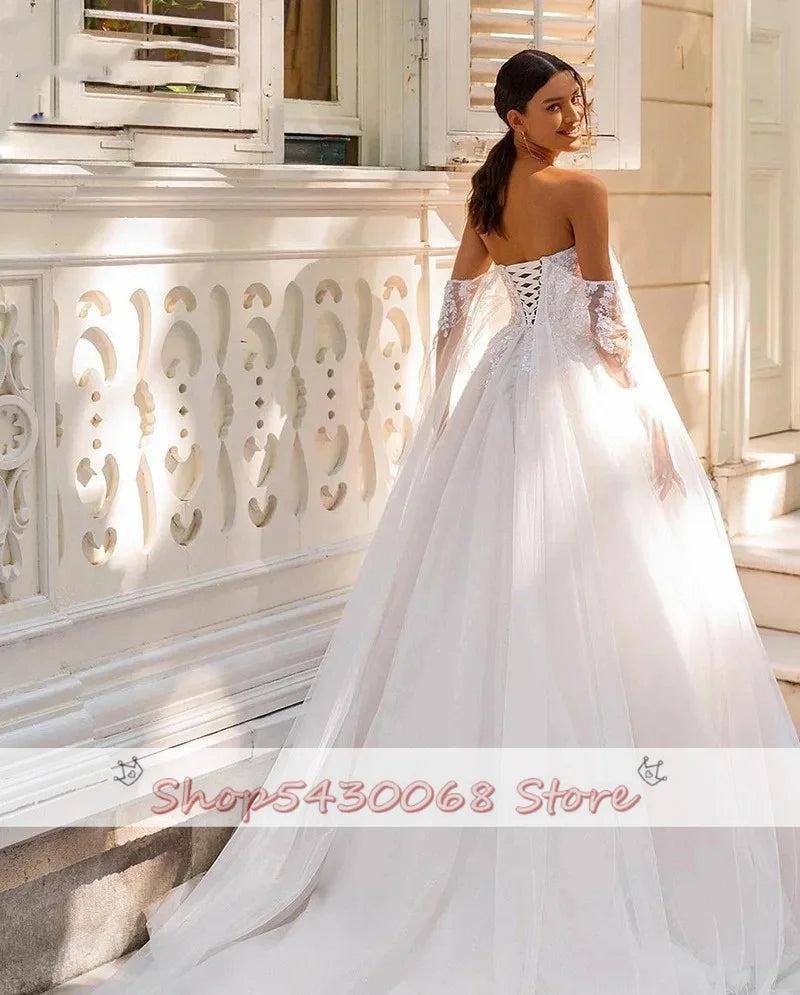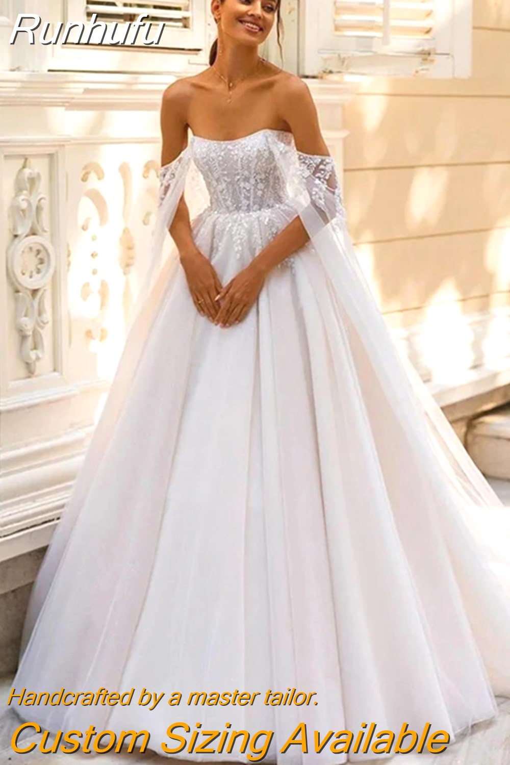Runhufu Romantic Wedding Dresses For Women Classic Boat Neck Bridal Gowns Off Shoulder Robe Appliques Vestidos De Novia