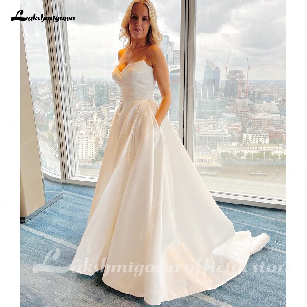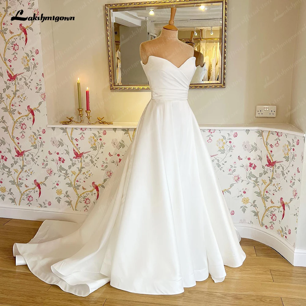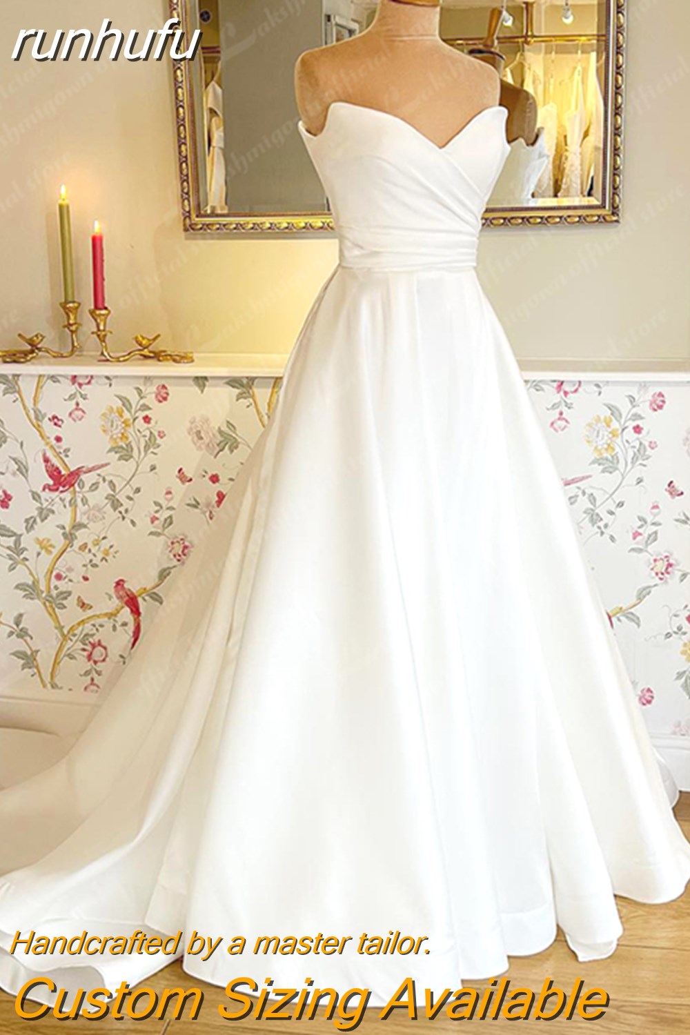 runhufu Satin Sweetheart Boho Wedding Dress 2023 Vestidos Civil Pleats Bridal Gown Custom Made trouwjurk Robe de mariee