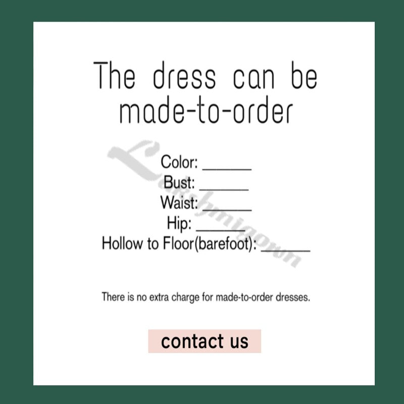 Note: All dresses will not be returned or refunded once production begins due to their custom nature.
