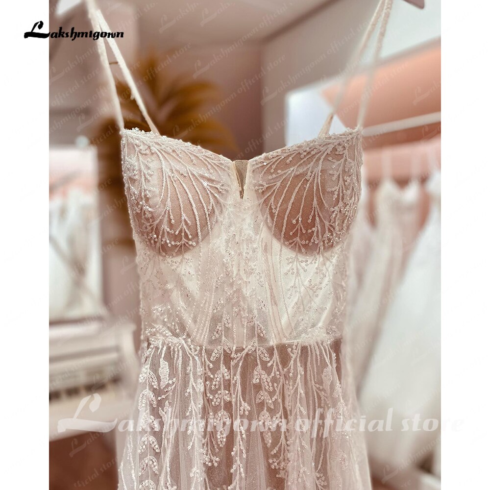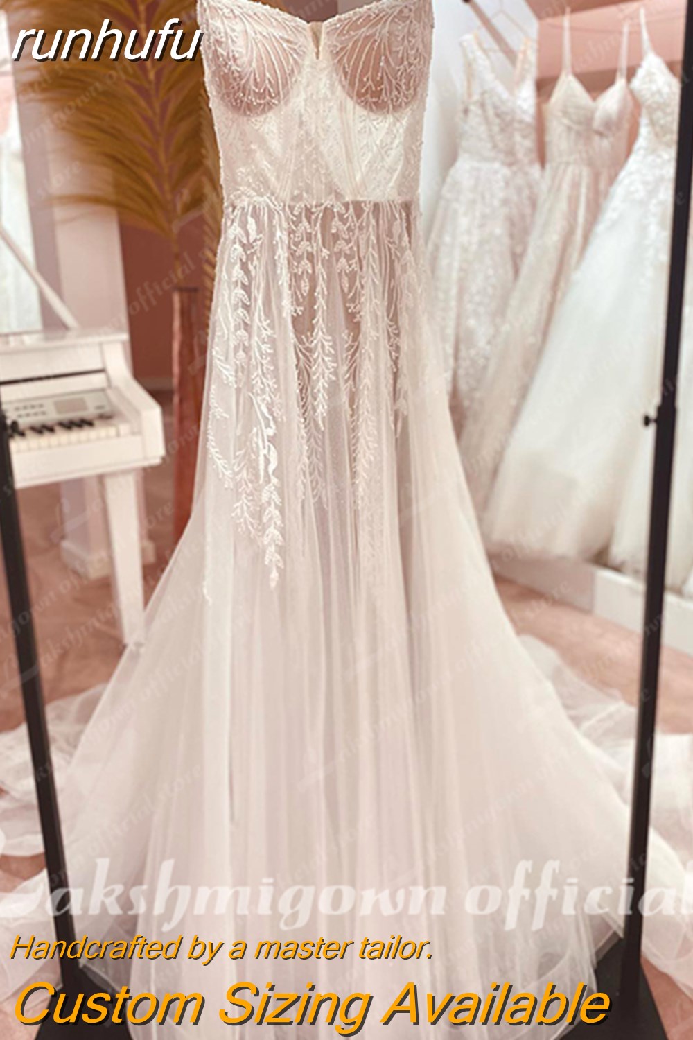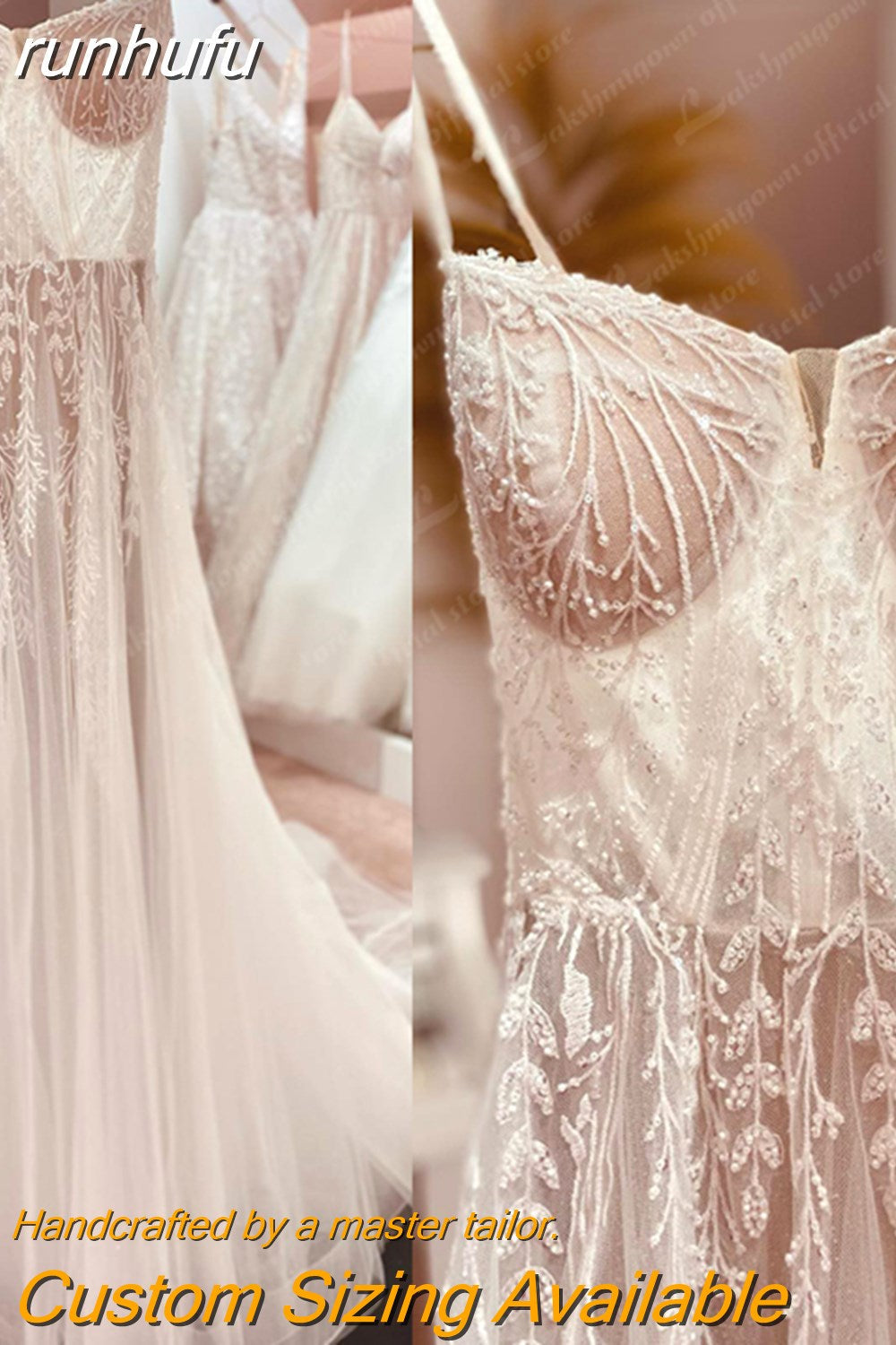 runhufu Sexy Beach Wedding Dress Spaghett Straps 2023 Robe Mariee Vintage Lace Boheme Wedding Dresses Backless Beaded