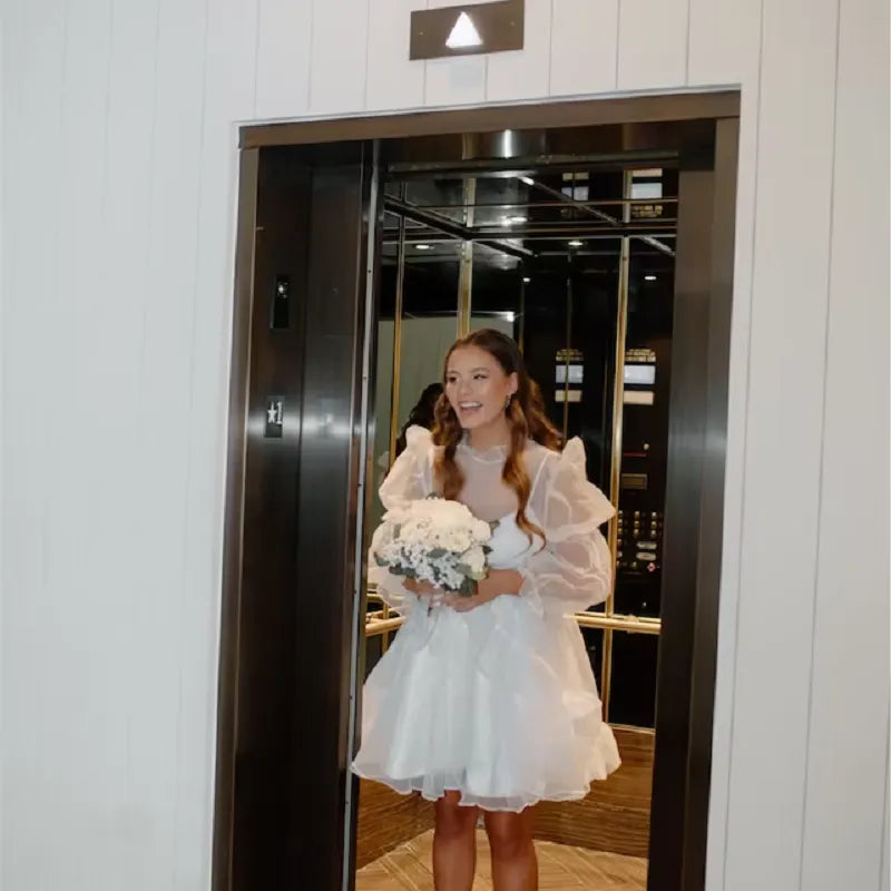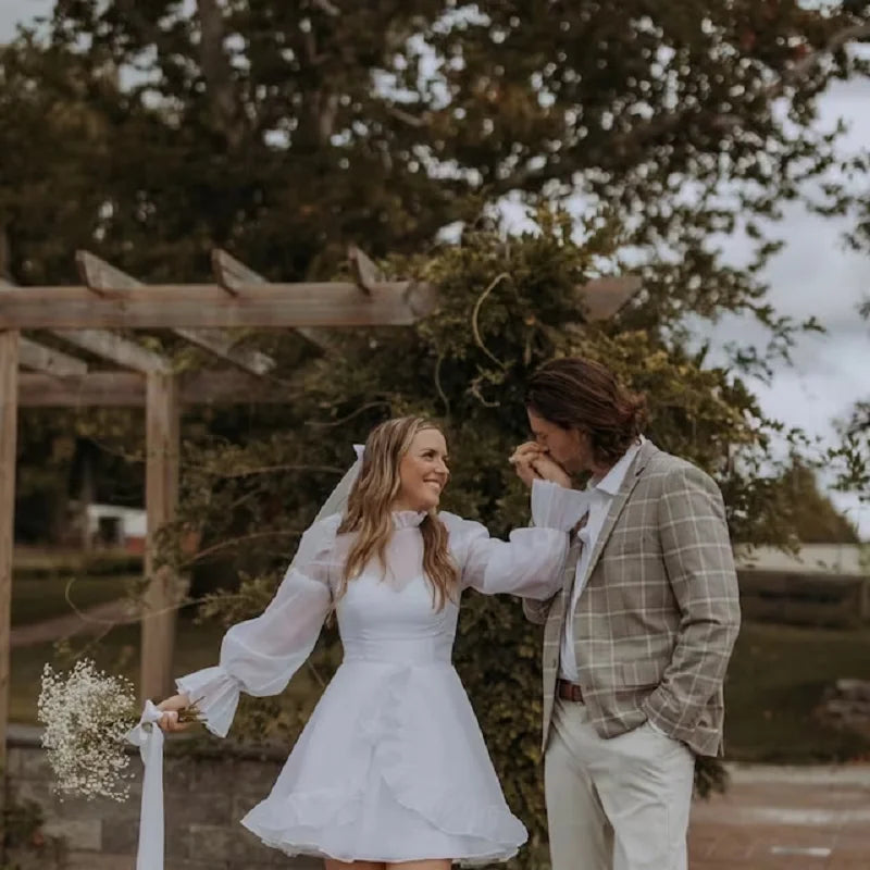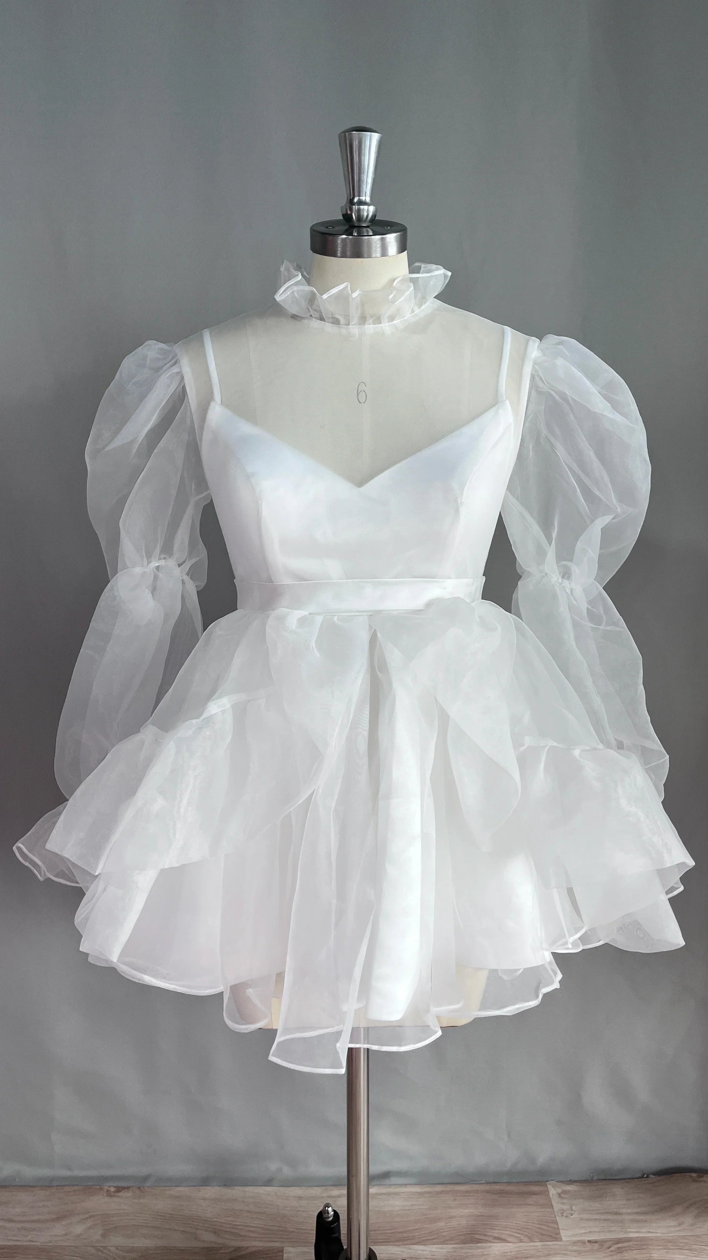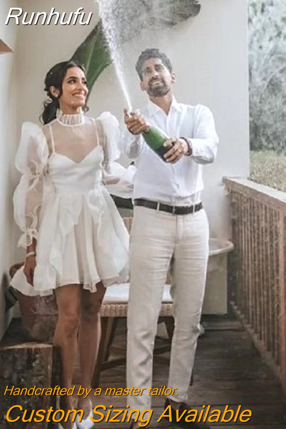 Runhufu Short Wedding Dress 2024 Long Puff Sleeves High Neck A-Line Mini Tulle Bridal Gowns Knee-Length Formal Vestidos De Novia