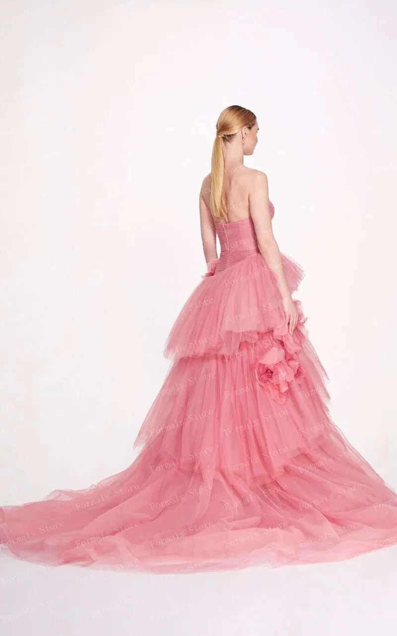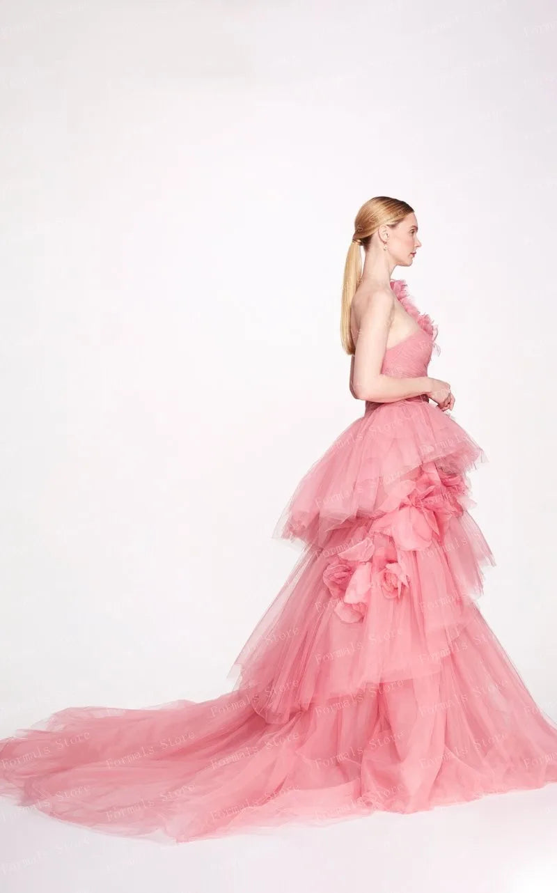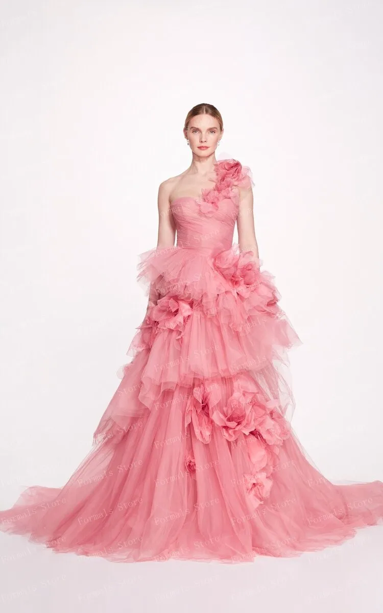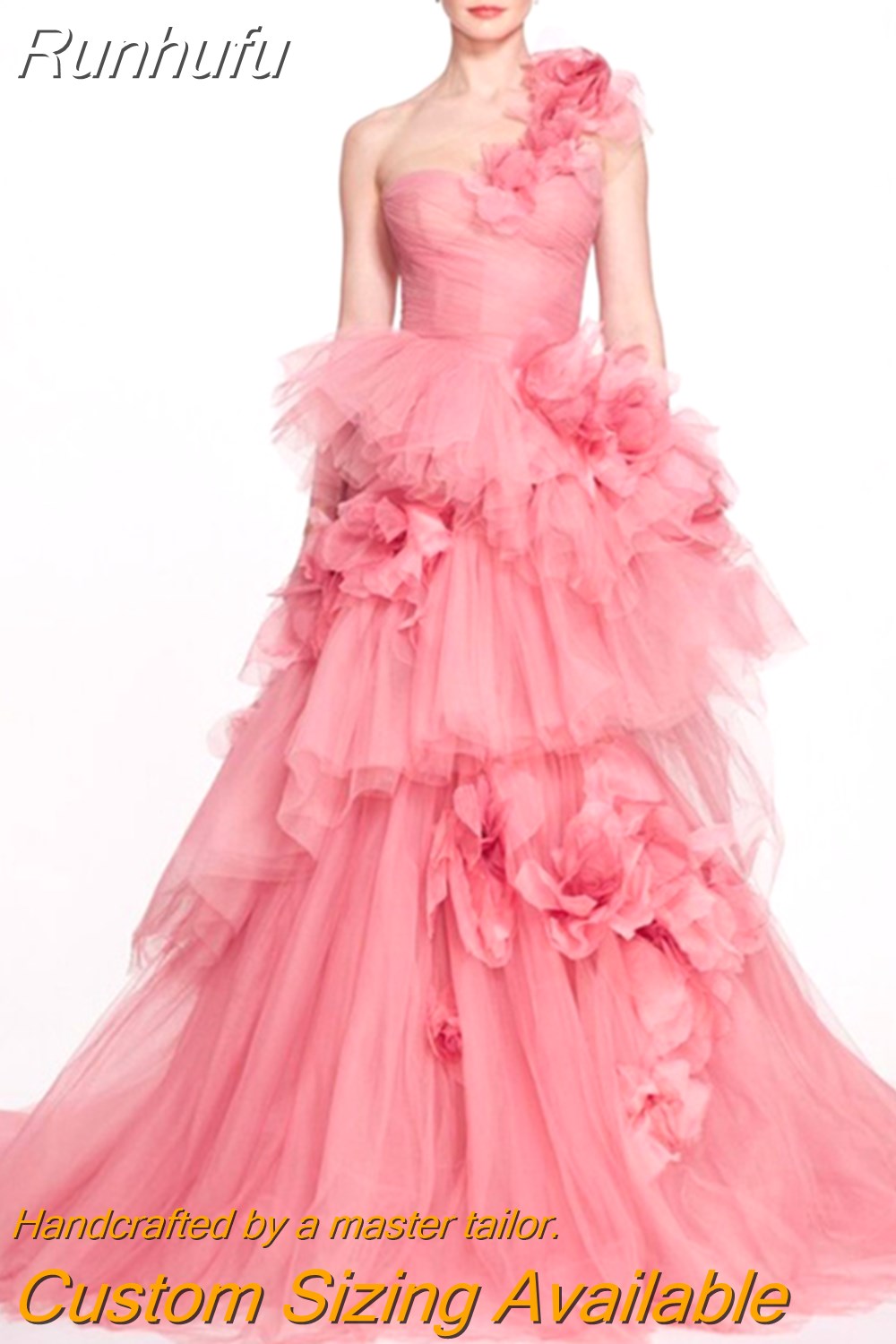 Runhufu Shoulder Layered Formal Occasion Dresses Pink 3D Floral Long Luxury Evening Dress Floor Length Layered Weeding Dress Woman