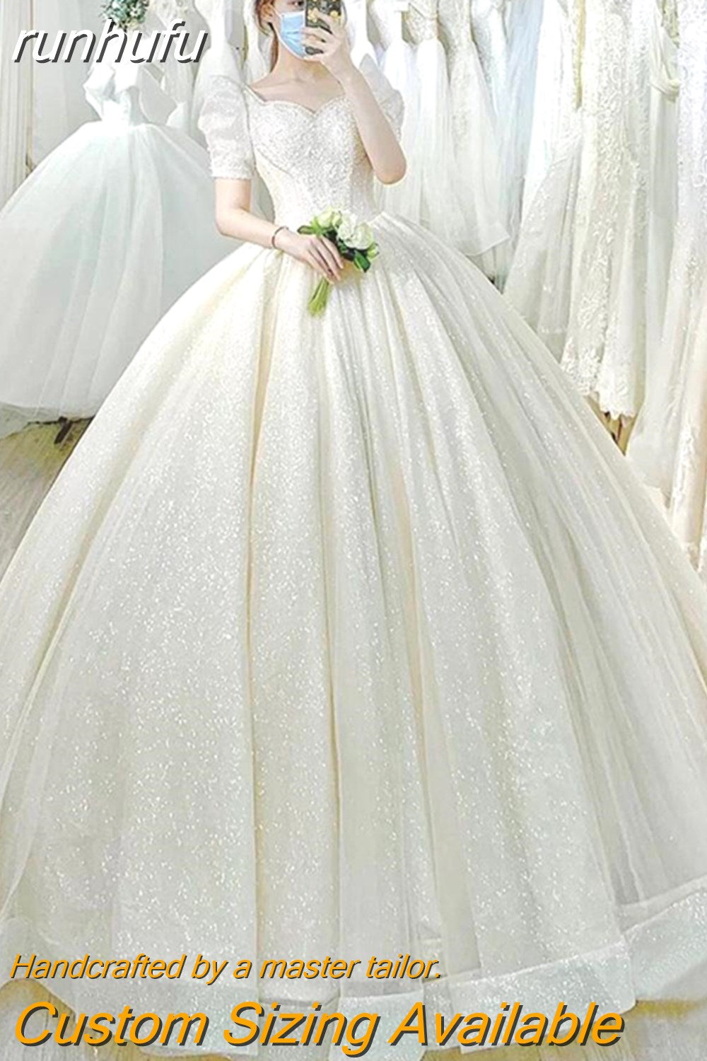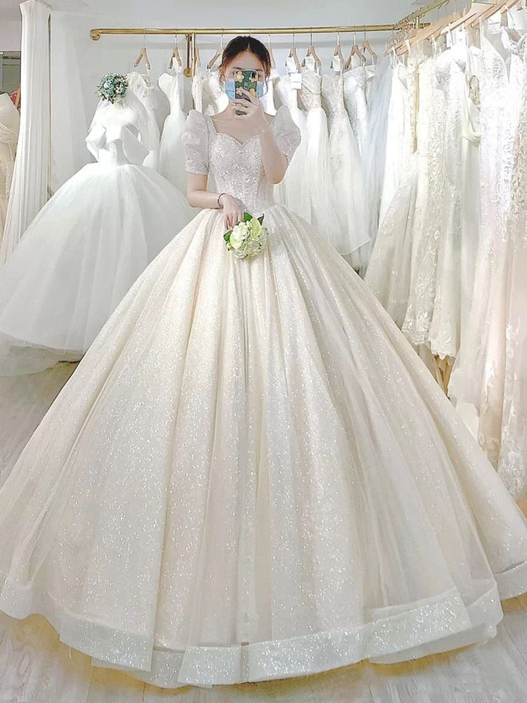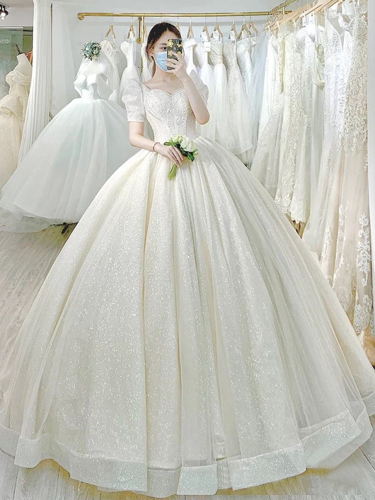 runhufu Simple Wedding Dress 2023 New Princess Bride Dress Shiny Ball Gown Wedding Dress Vestido De Noiva