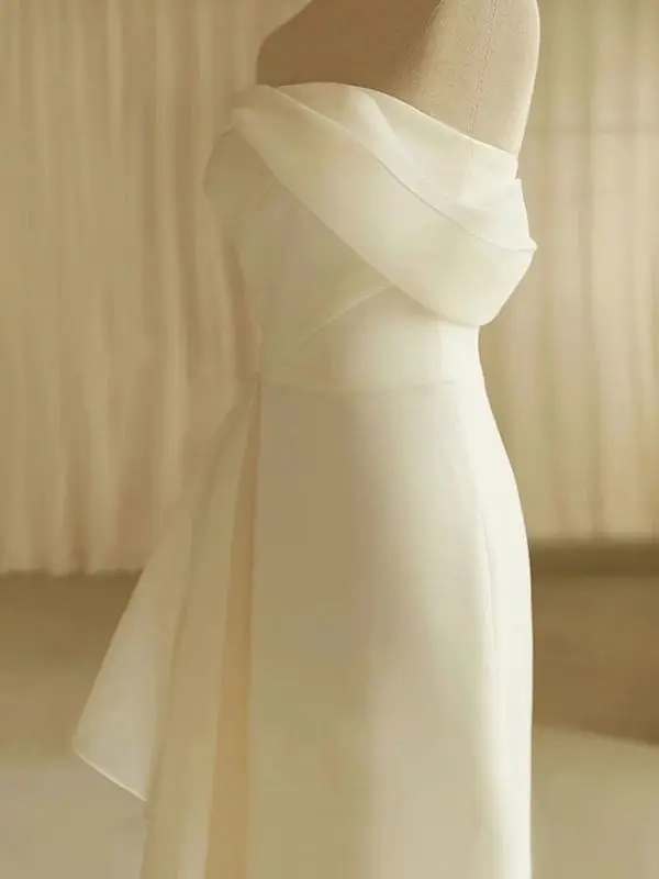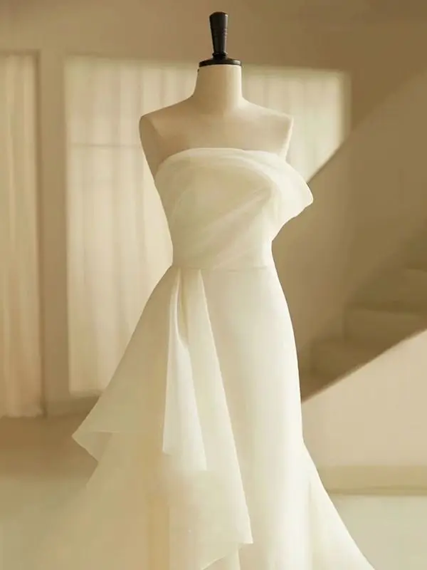 Runhufu Simple Wedding Dresses For Women Sexy Strapless Bridal Dress With Small Train Elegant Long Sleeveless Vestidos De Novia