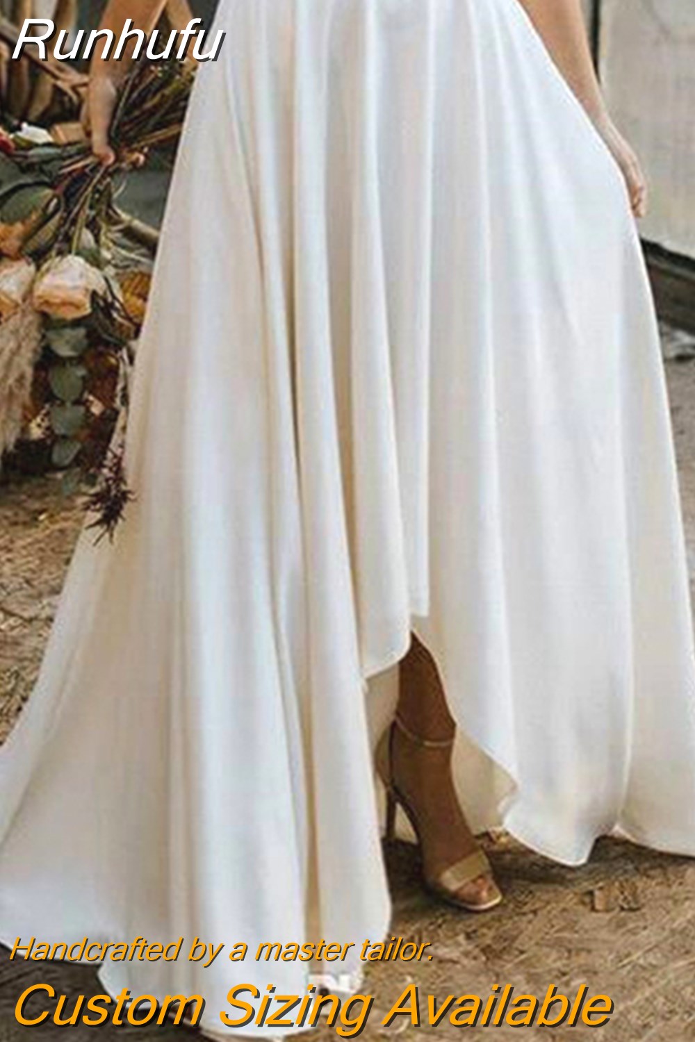 Runhufu Skirt Only for Two Pieces Wedding Dresses 2023 Lace Top Short Sleeve Beach Bride Gowns