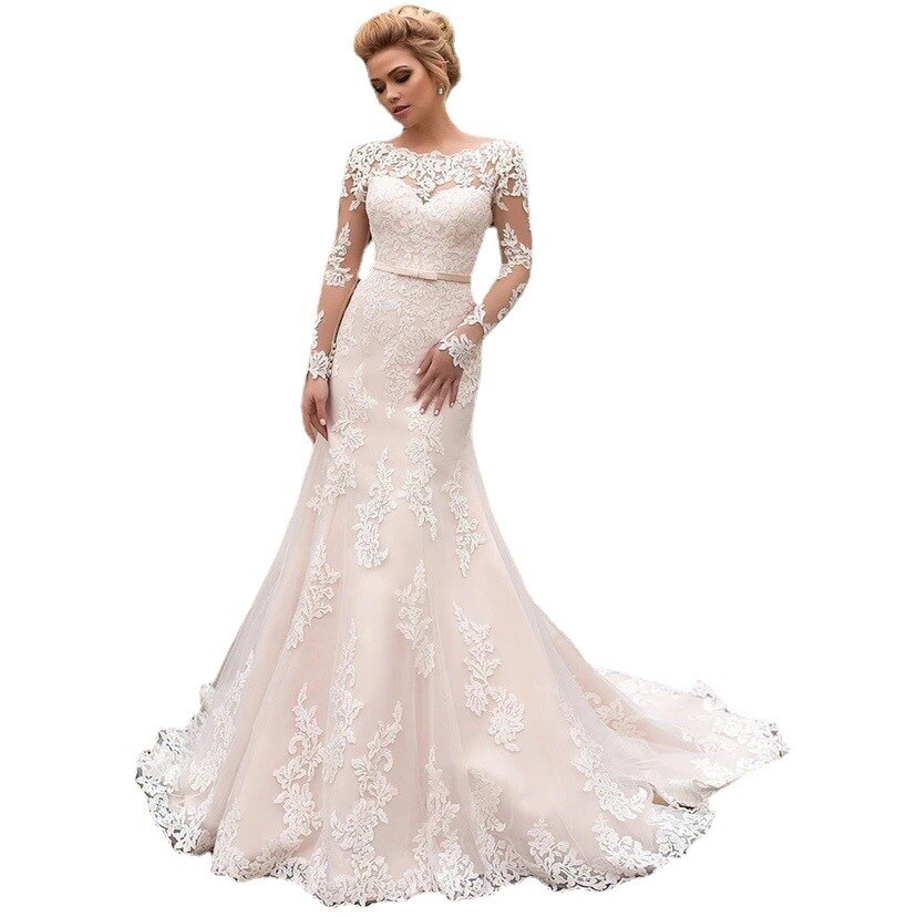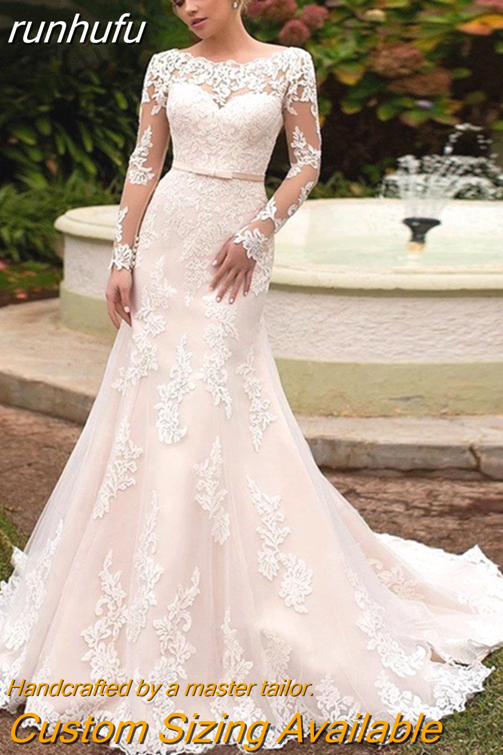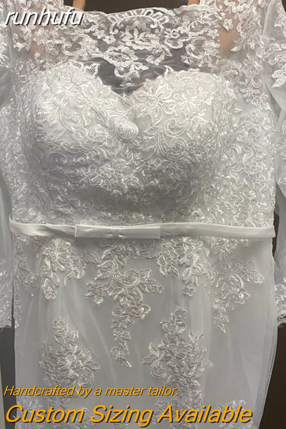 Runhufu Long Sleeves Lace Mermaid Wedding Dress For Bride Satin Bridal Gowns Elegant Plus Size Custom Made Vestido De Novia 2023