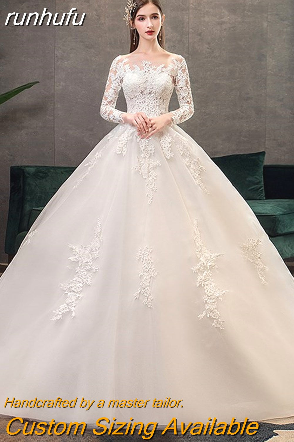 runhufu Sleeve Wedding Dresses 2023 Lace New Luxury Muslim Ball Gown Wedding Dress Custom Made Vestido De Noiva