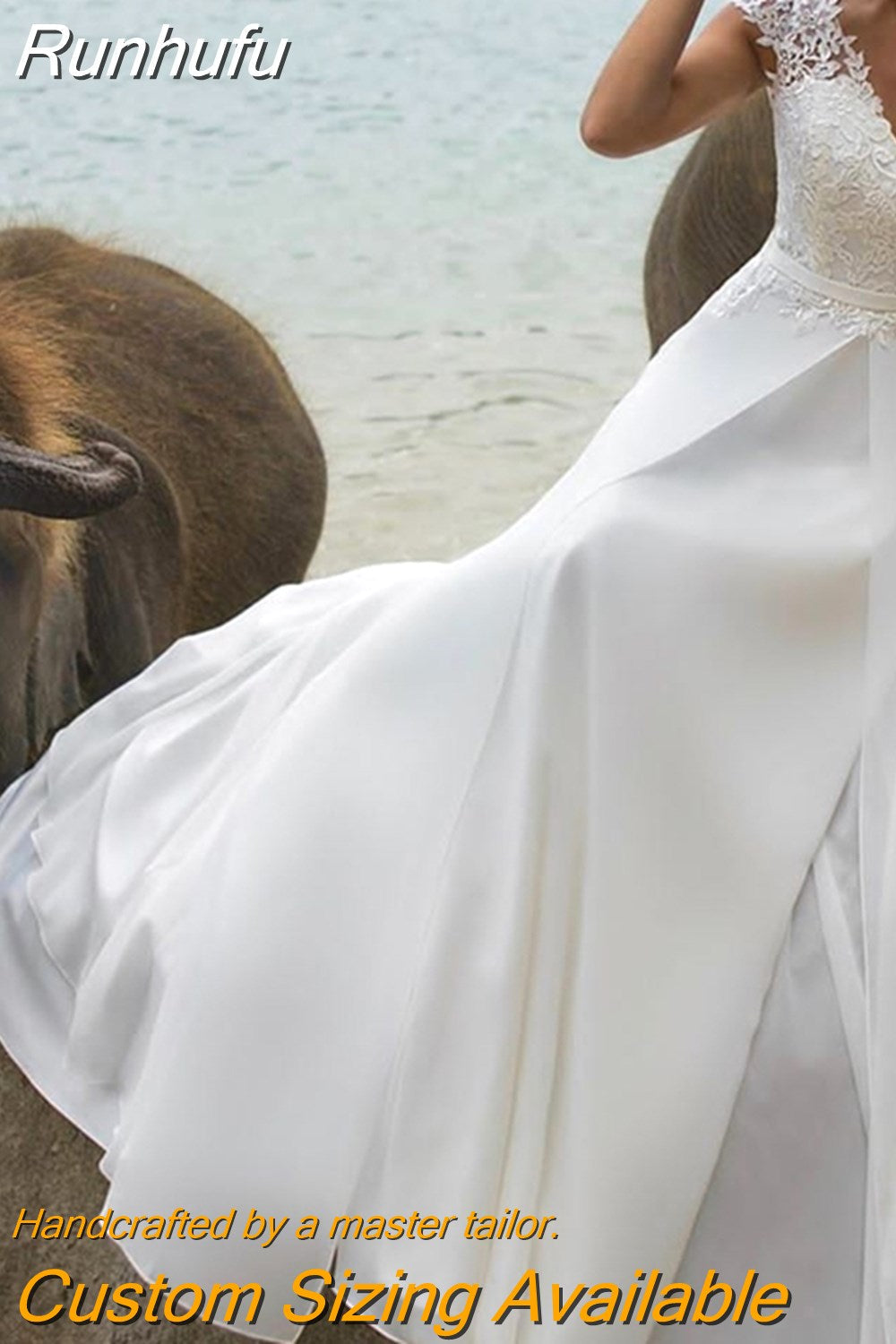 Runhufu Sleeves Boho Wedding Dress Beach Chiffon Vestido De Novia 2023 Lace Appliques Sexy Women Bride Gown Robe Mariage Trouwjurk
