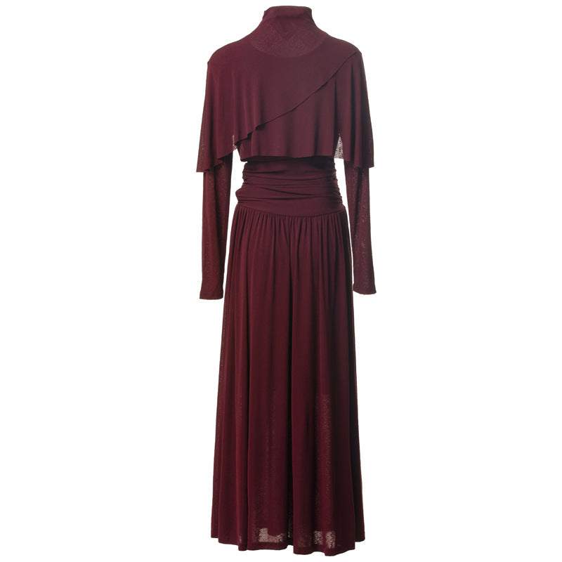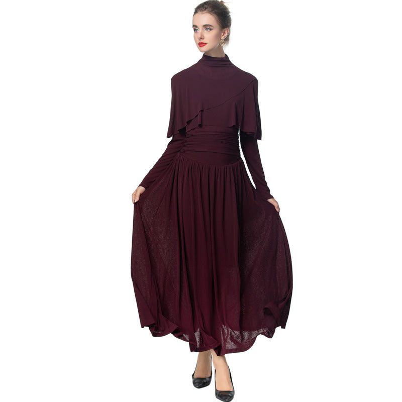 runhufu Sleeves Folded Waist Wine Red Elastic Knitted Princess Style Dress Station Spring And Summer Women New 2025