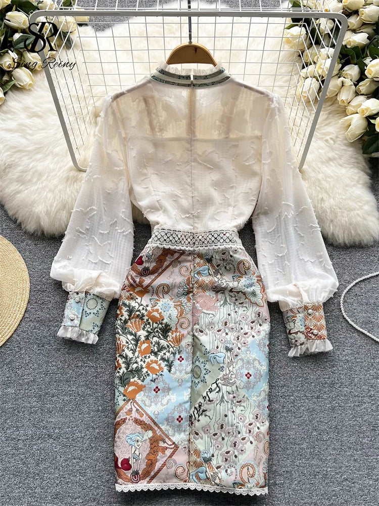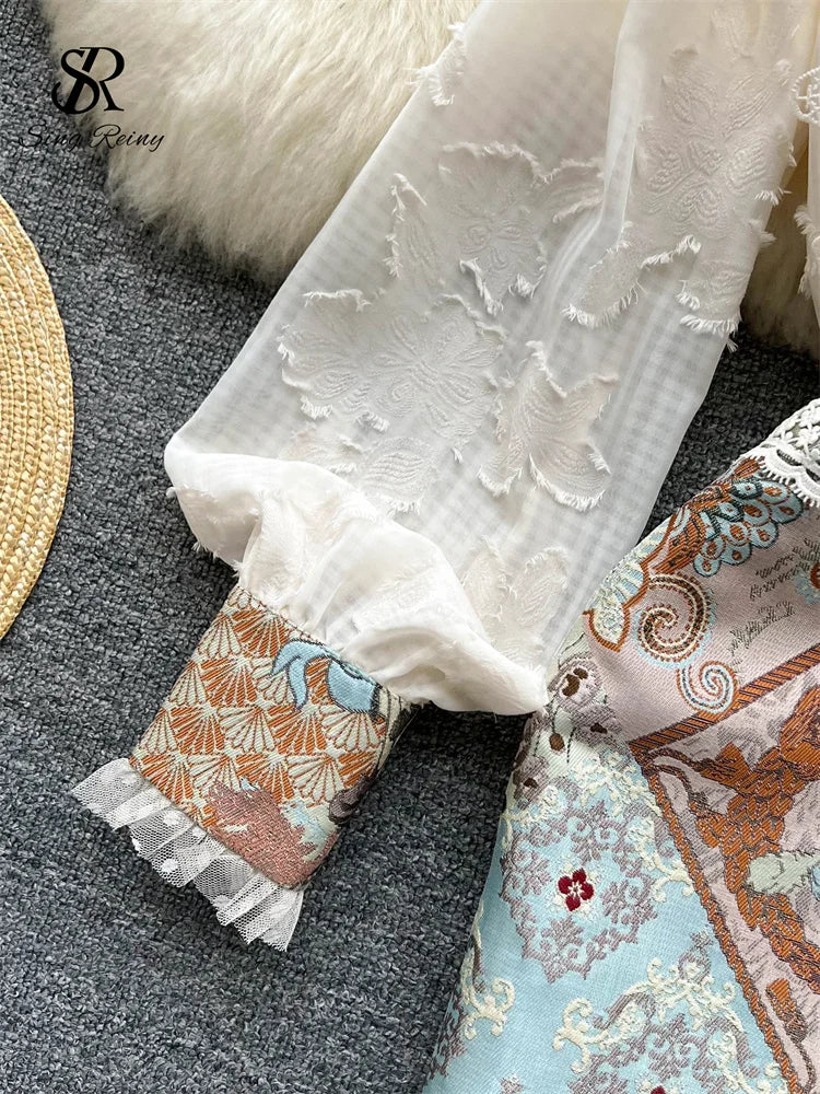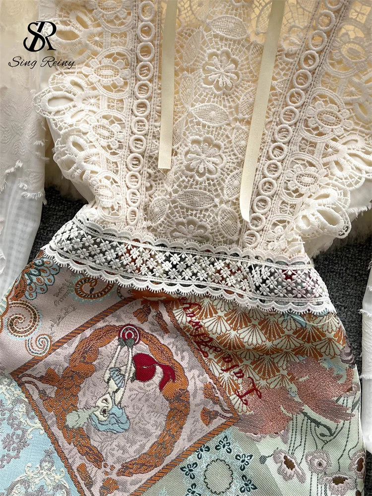 Runhufu Splice Lace Embroidery Women Dress Summer 2024 Temperament Elegant Zipper Long Sleeves Ladies A Line Slim Chic Dresses
