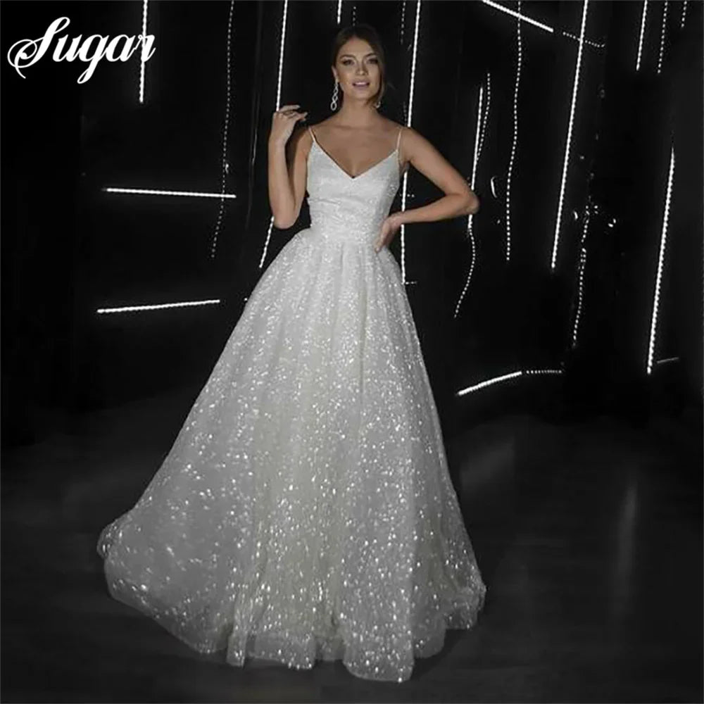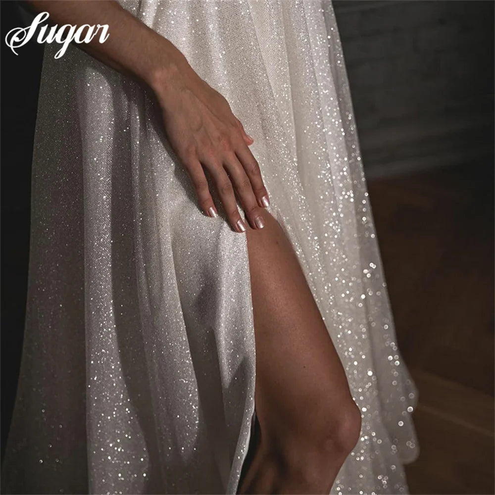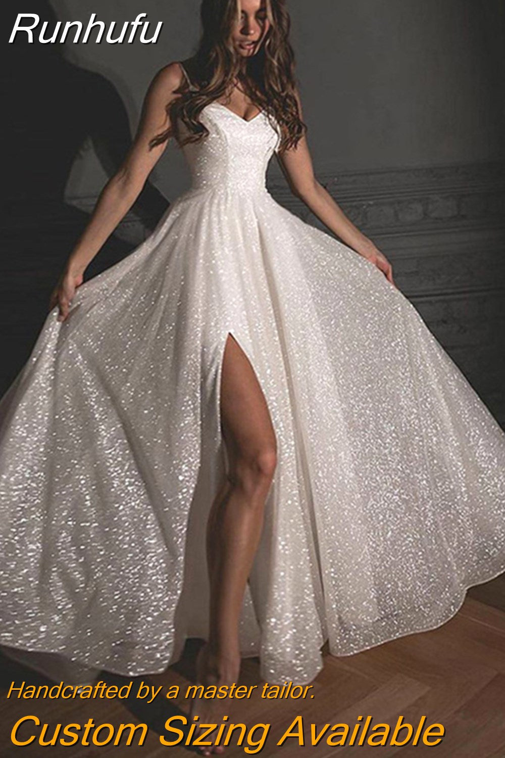 Runhufu Split Sweetheart Wedding Dresses Glitter Tulle Sexy Bridal Gown Spaghetti Straps Boho Bride dresses Vestidos de novia