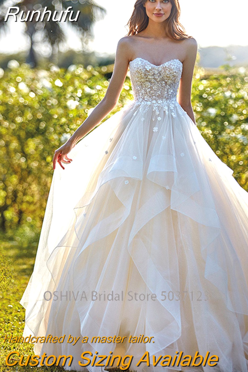 Runhufu Sweetheart A-Line Wedding Dress Lace Applique Sleeveless Tulle Bridal Gowns Vestido De Novia