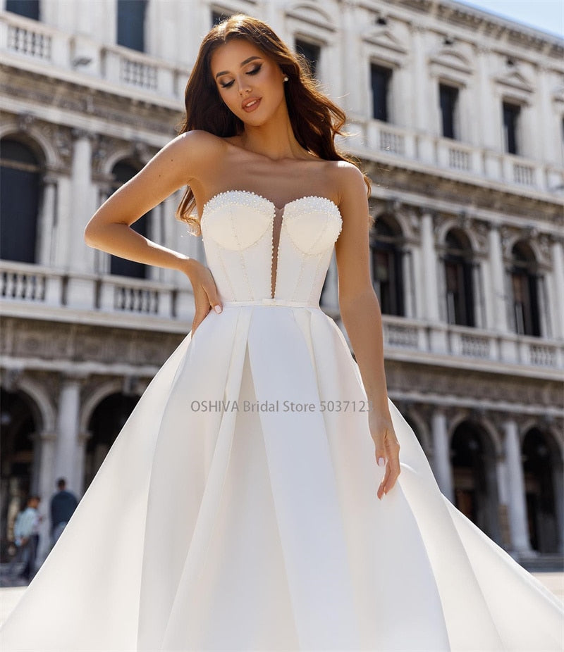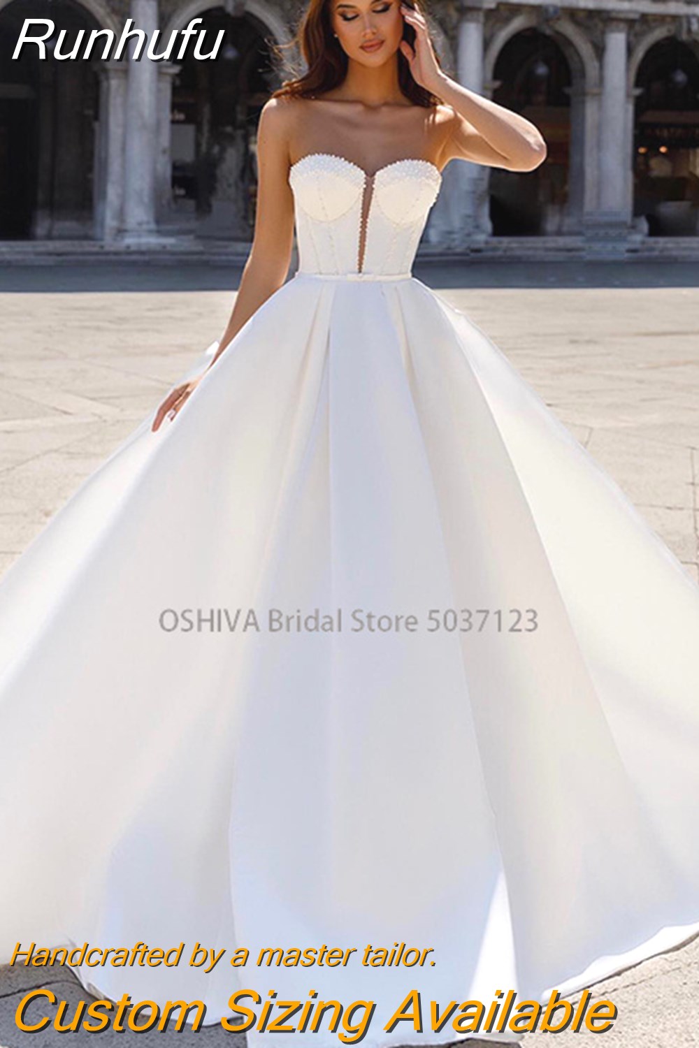 Runhufu Sweetheart Neck Satin A-Line Wedding Dresses Sleeveless Lace Appliques Bridal Gowns Vestidos De Noiva