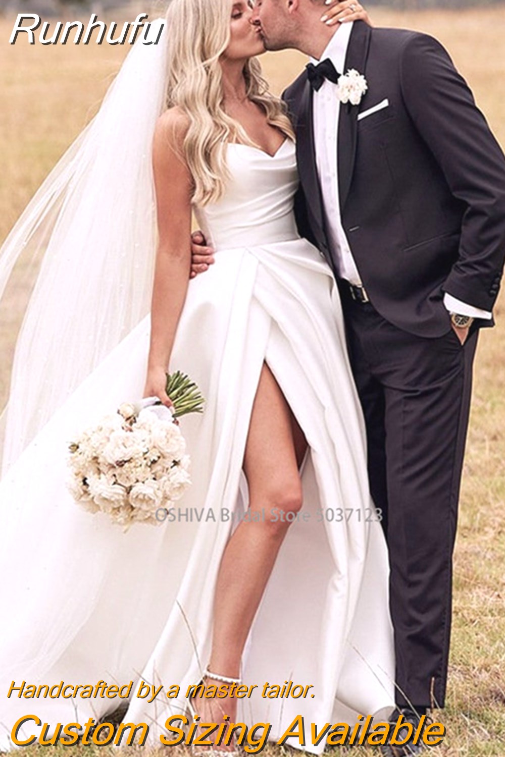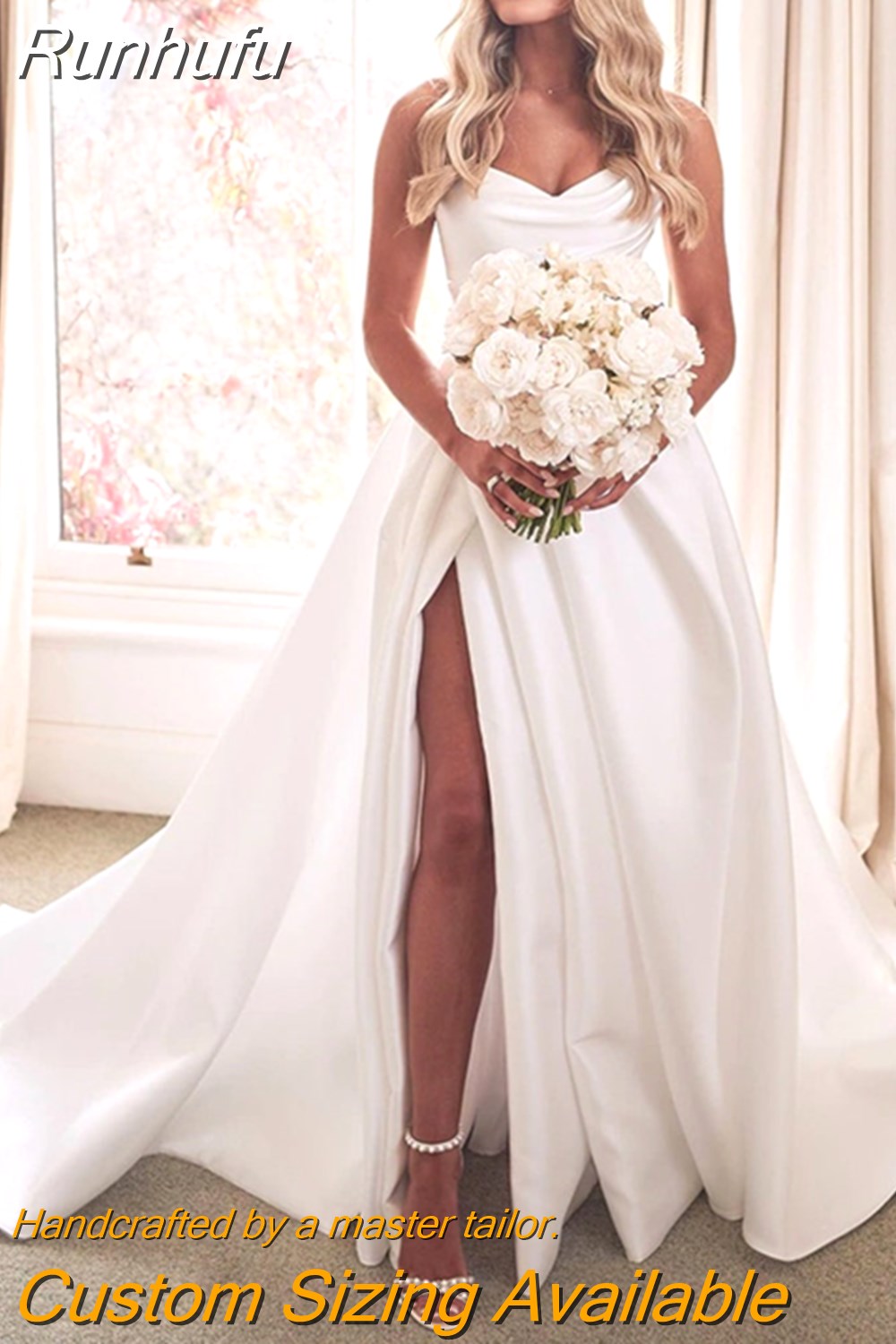 Runhufu Sweetheart Neckline A-Line Wedding Dresses Sleeveless Princess Bridal Gowns Vestido De Novia