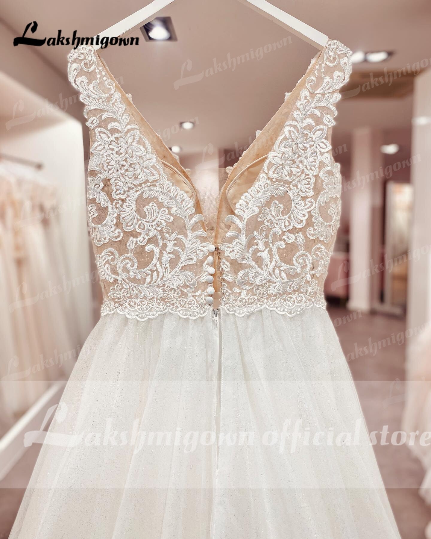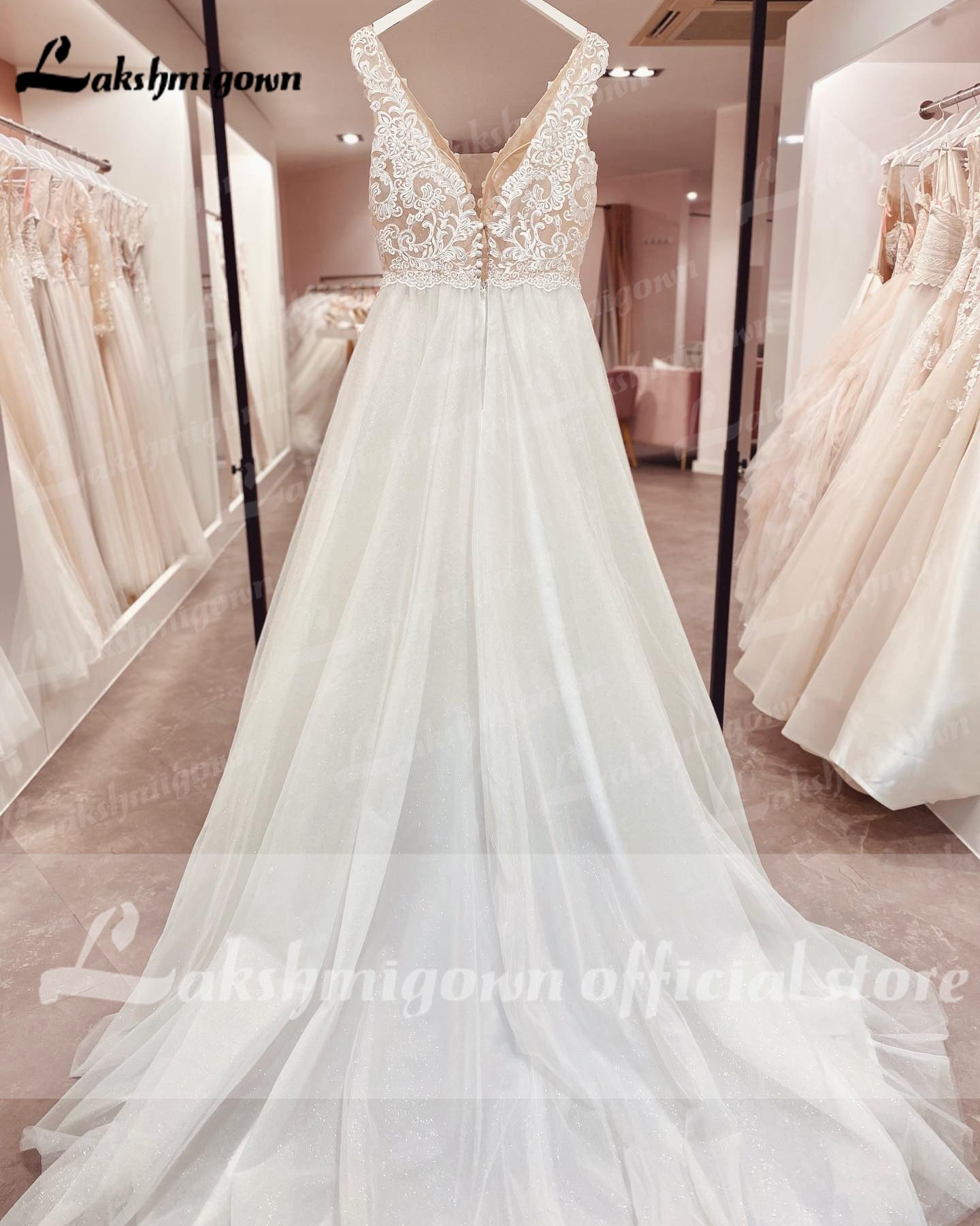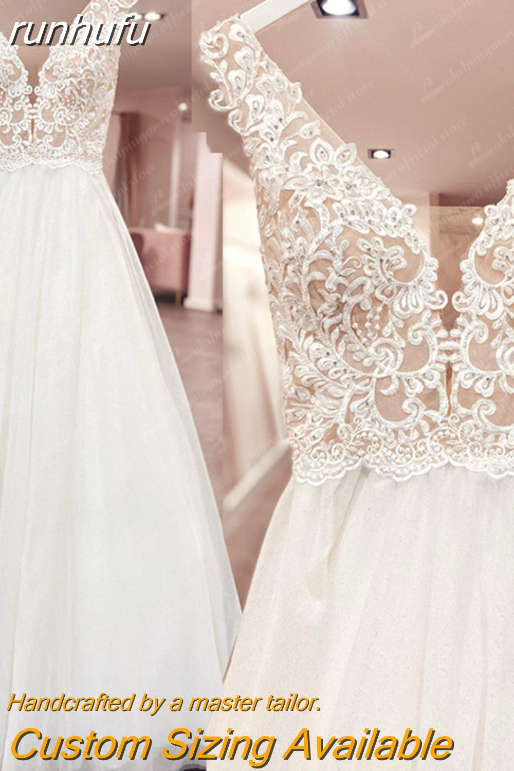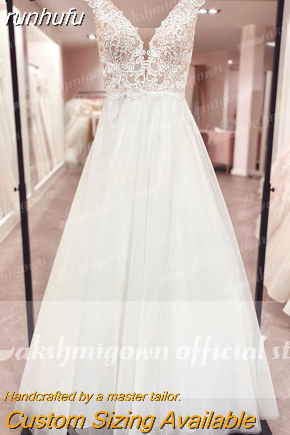 runhufu V Neck Boho A Line Wedding Dress 2023 Chic Robe Tank Bohemian Beach Bride Dress Lace Appliques Tulle Vestido De Noiva