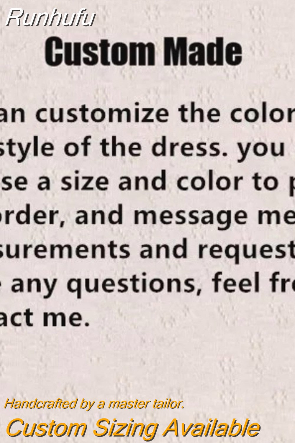 Note: All dresses will not be returned or refunded once production begins due to their custom nature.