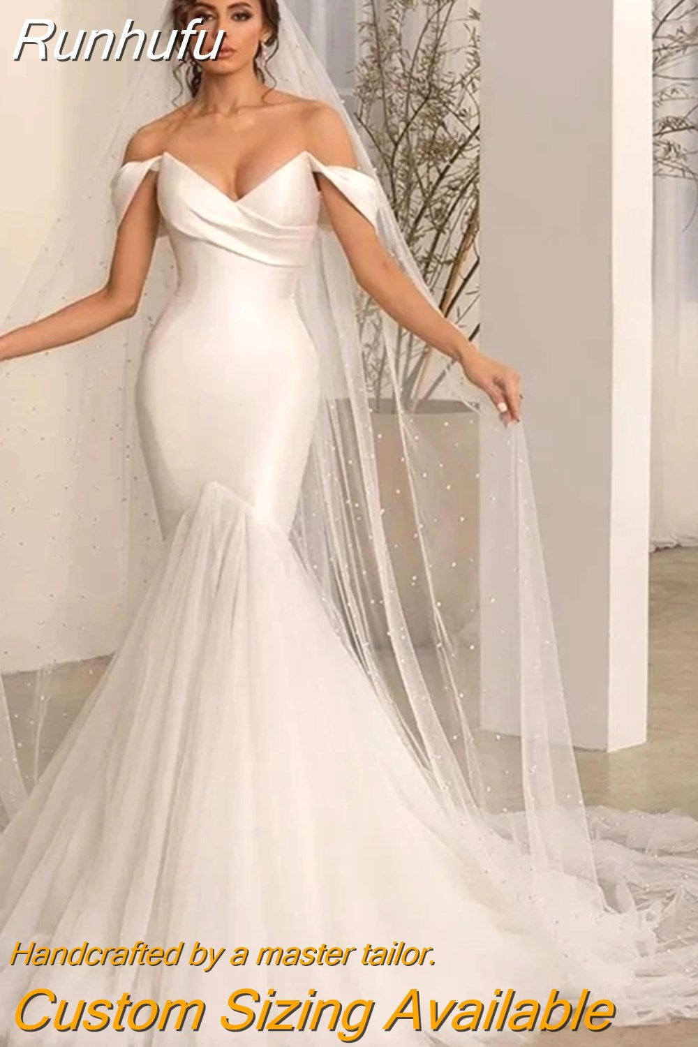 Runhufu Vintage Off Shoulder Wedding Dresses Sweetheart Mermaid Satin And Tulle Bridal Gowns Robes Vestidos De Novia