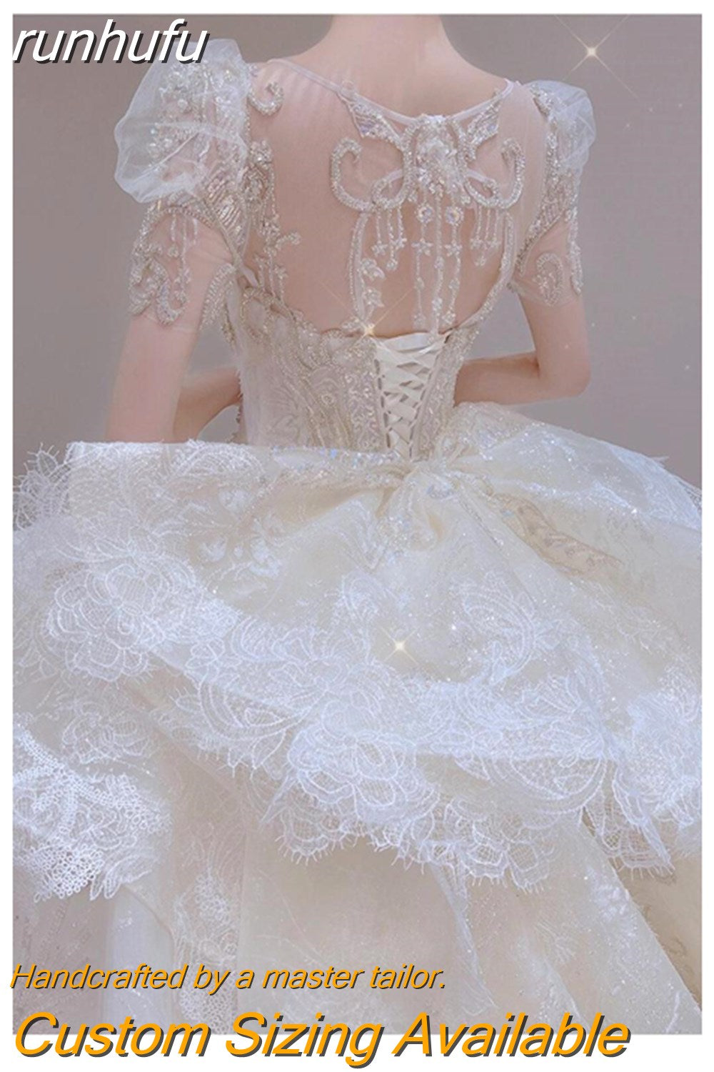 runhufu Vintage Shiny Wedding Dress 2023 New Long Train Bride Dress Big Beading Ball Gown Wedding Dresses Plus Size