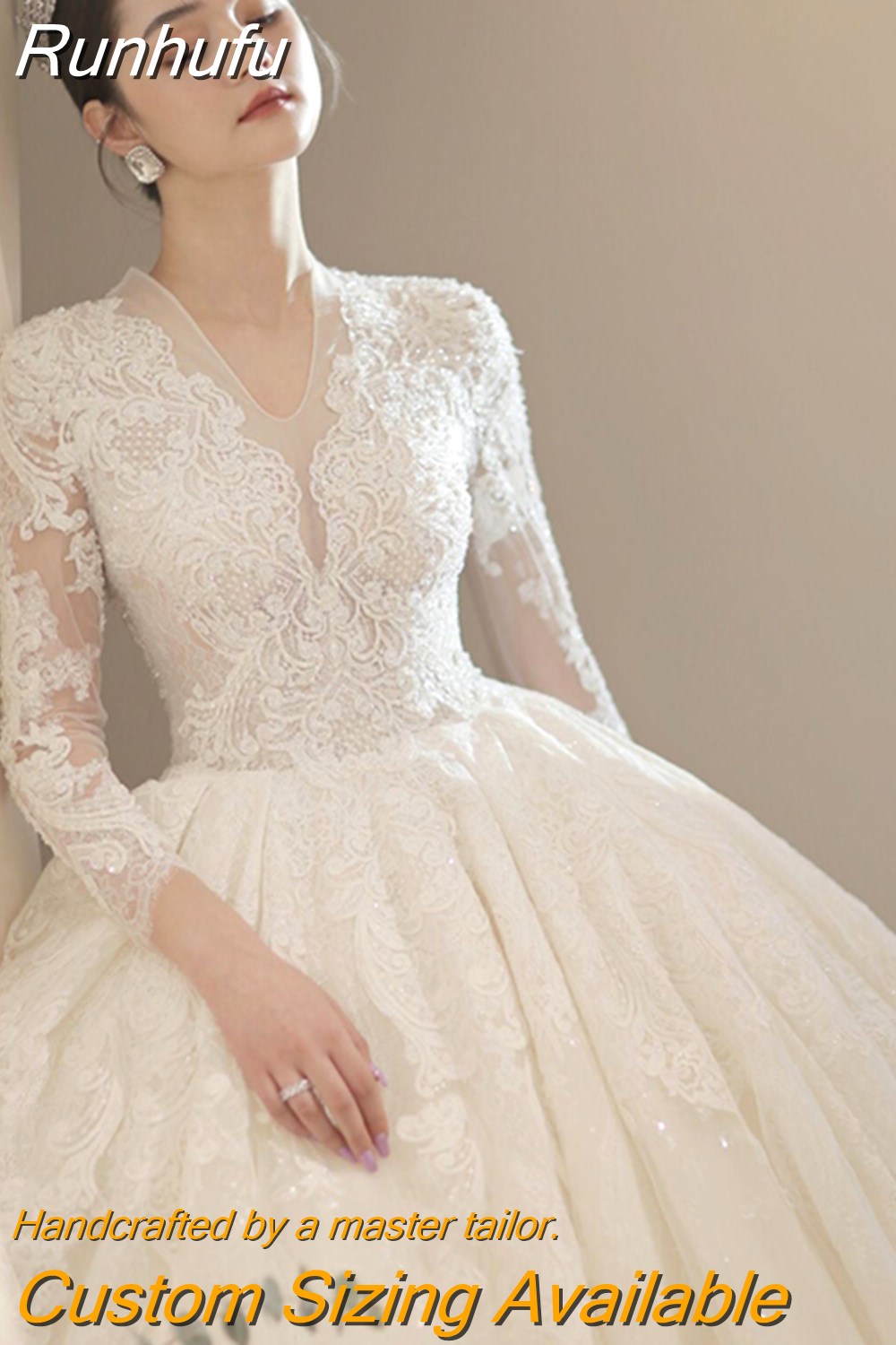 Runhufu Wedding Dress 2023 Long Sleeve New Winter V-neck Flower Ball Gown Princess Wedding Dresses Vestido De Noiva