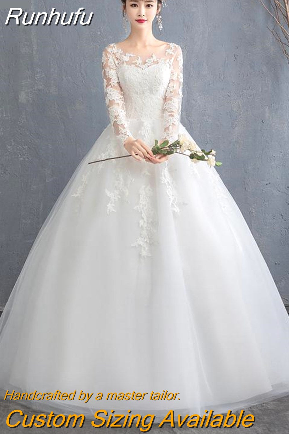 Runhufu Wedding Dress 2023 New Full Sleeve Classic Embroidery Lace Up Ball Gown Princess Wedding Dresses Robe De Mariee