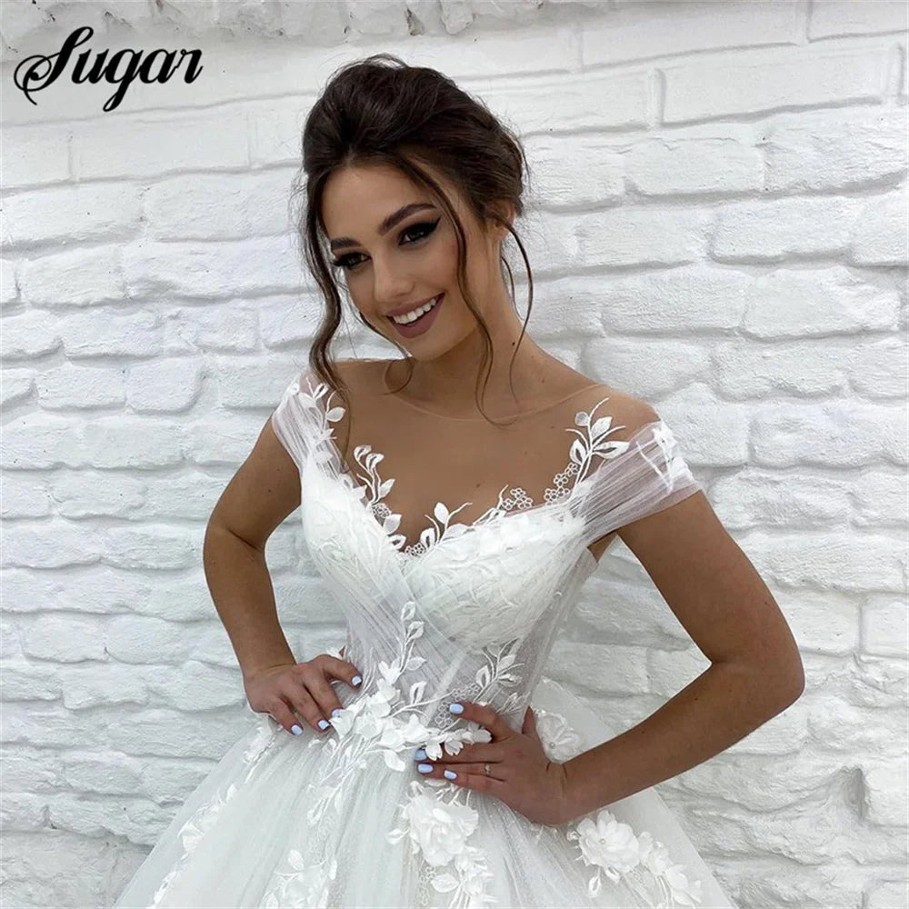 Runhufu Wedding Dress Off The Shoulder 3D Lace Appliques Boho Bride Dresses Vestido De Novia Custom Made Ball Gowns 2023
