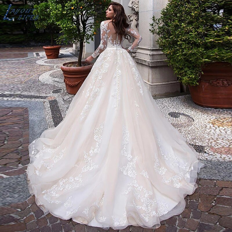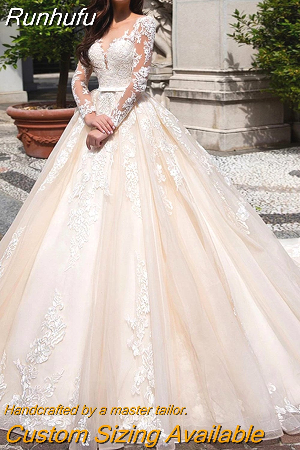 Runhufu Wedding Dress Princess Lace Appliques Long Sleeve Ball Gown Vestido De Novia Sweep Train Bride Bridal свадебное платье