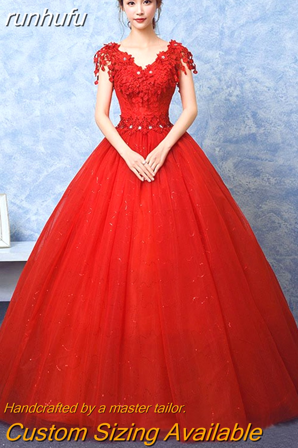 runhufu Wedding Dress The Red V-neck Ball Gown Vintage Wedding Dresses Lace Embroidery Vestido De Noiva