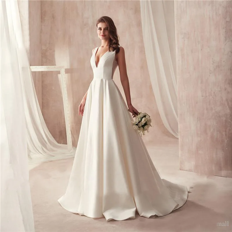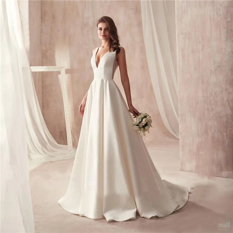 Runhufu Wedding Dresses Deep V-neck Stain Appliques Backless Wedding Gowns Bridal Dress Vestido De Noiva robe de mariée