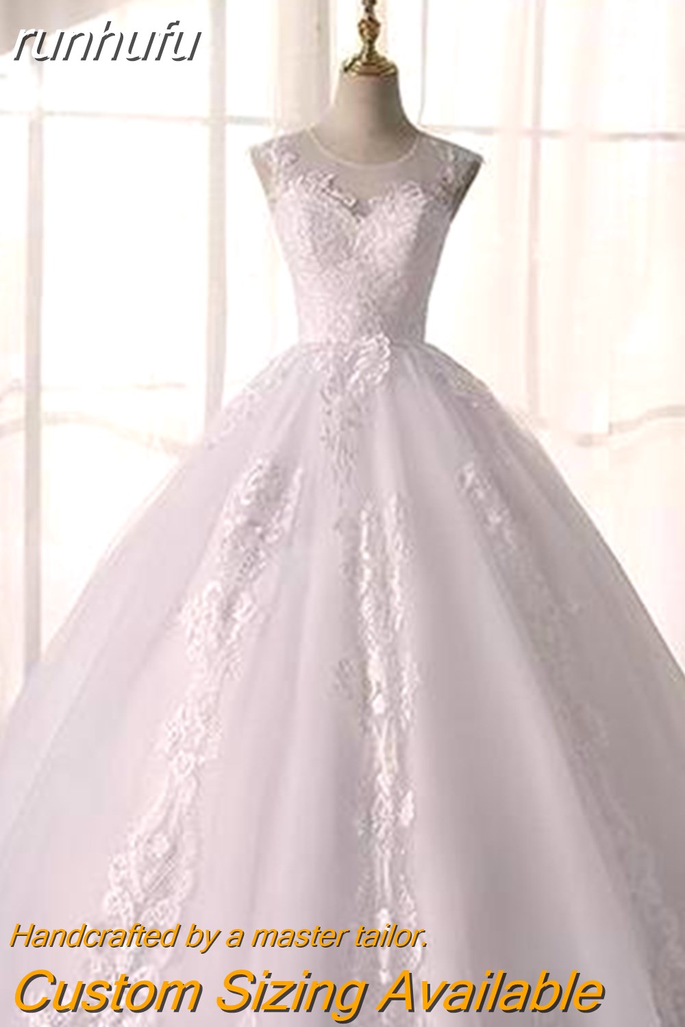 runhufu White Lace Wedding Dress With Train Sleeveless Bridal Dress Back Zipper Ball Gown Luxury Vestido De Noiva Robe De Mariee