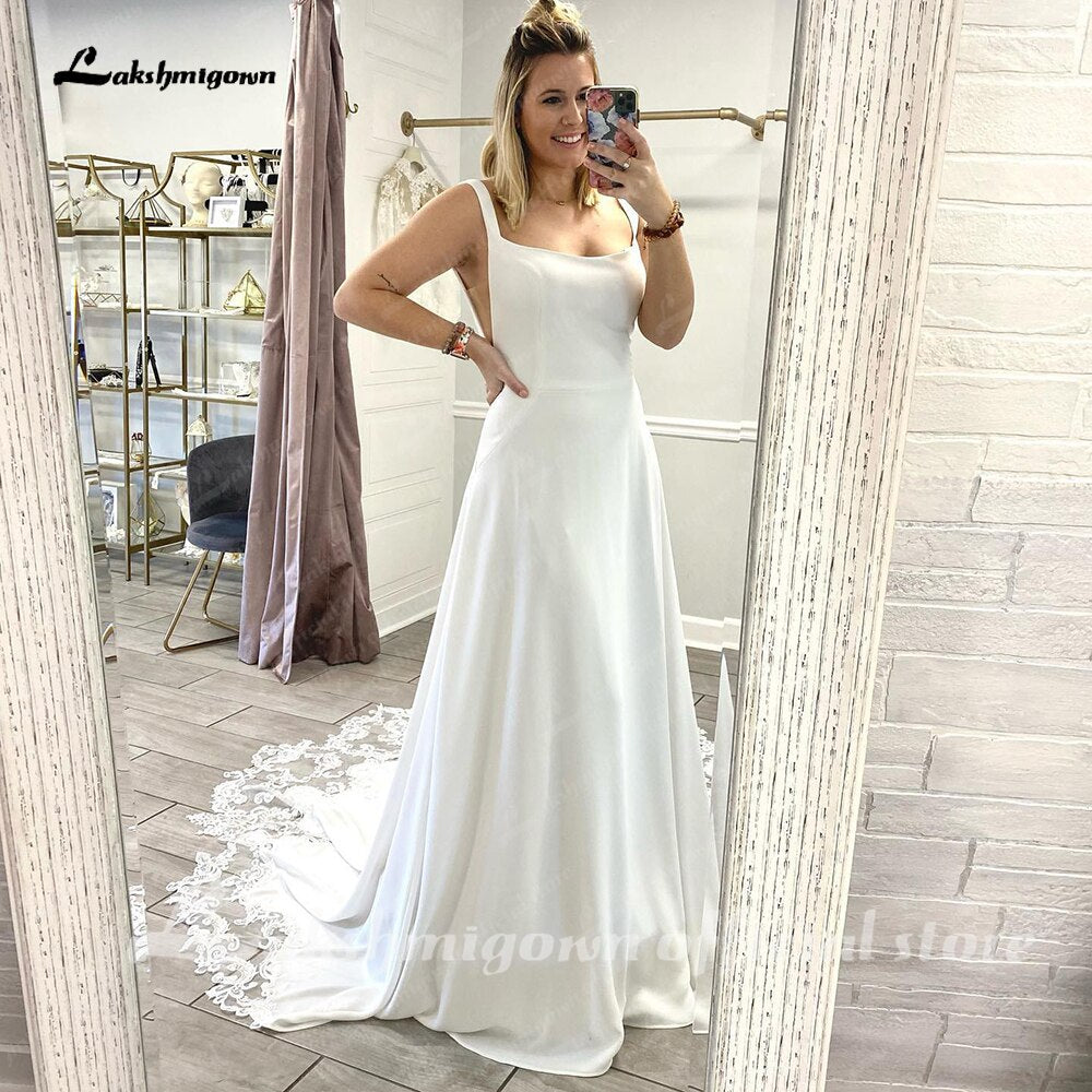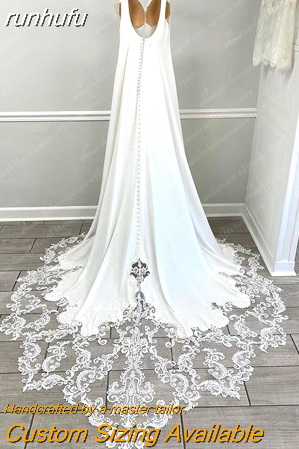 runhufu Women Boho Beach Wedding Dress Crepe Satin Scoop neck 2023 Backless Sexy Bridal Gown Lace A Line Wedding Gown