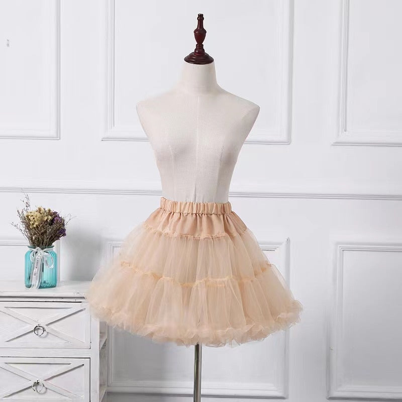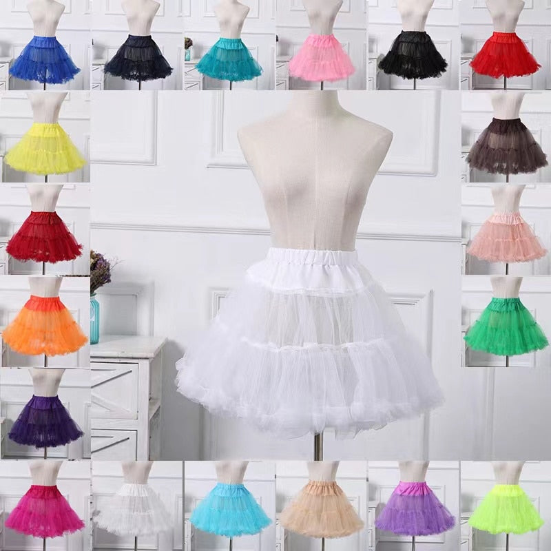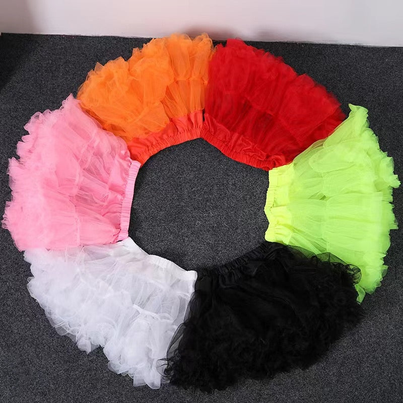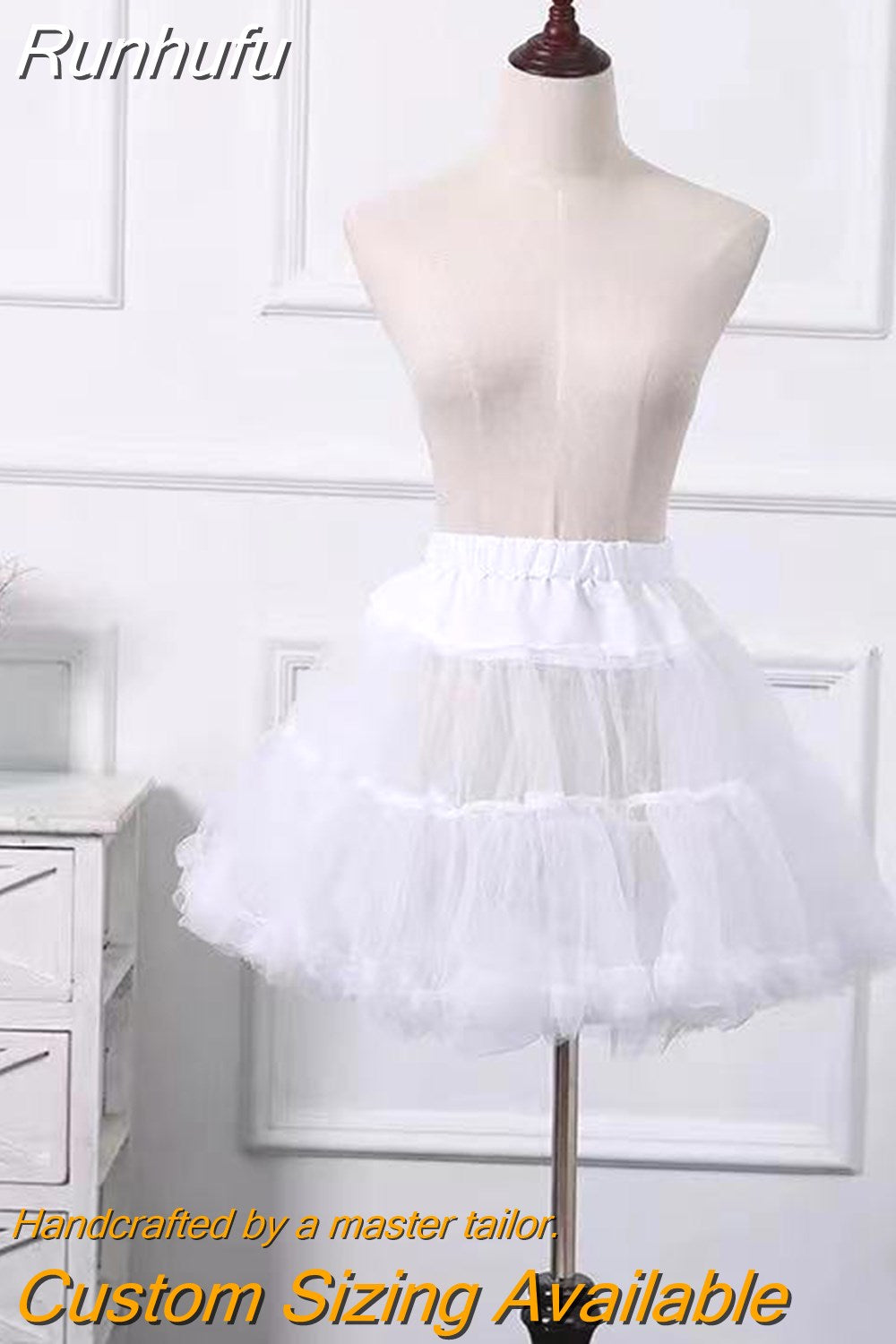 Runhufu Women Girls Ruffled Short Petticoat Solid White Color Fluffy Bubble Tutu Skirt Puffy Half Slip Prom Crinoline Underskirt