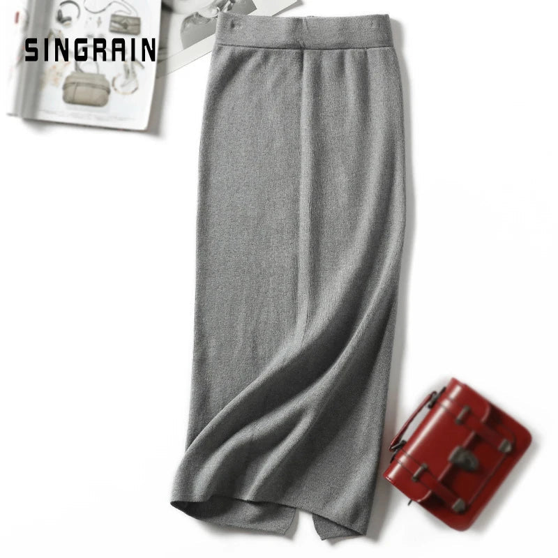 Runhufu Women sweater skirt pencil midi knitted skirt high waist skirts womens winter long warm knitting skirts split bottoms