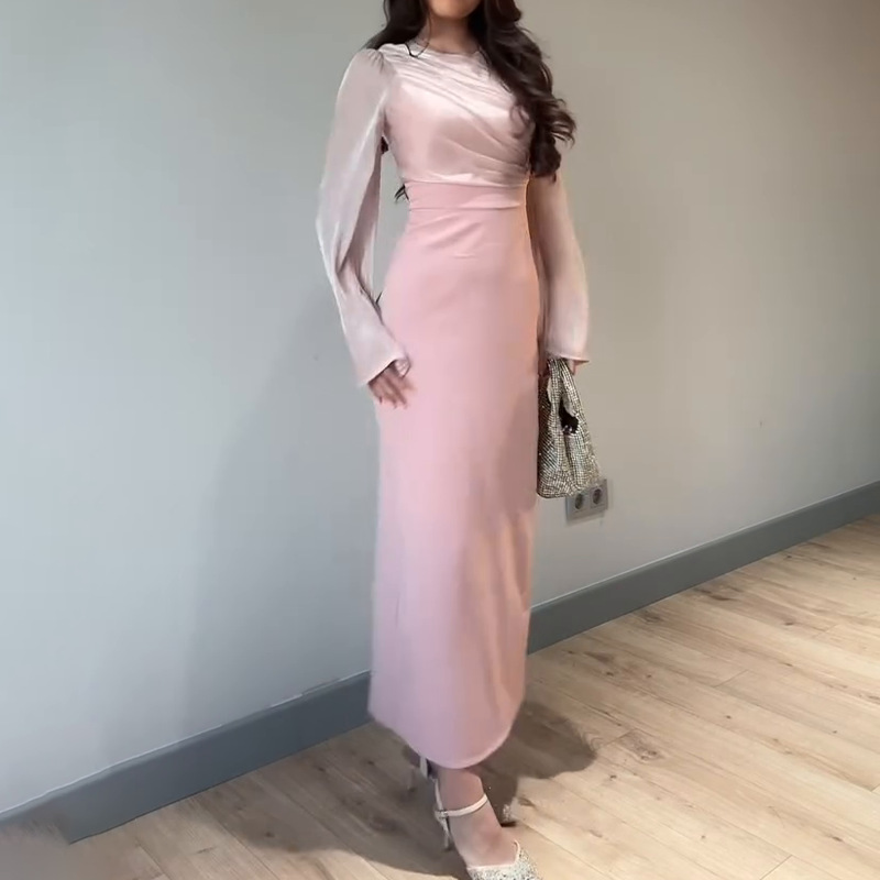 runhufu Women's Autumn Round-Neck Long Sleeve Splicing Long Skirts To Repair Height Waist Skirt Women