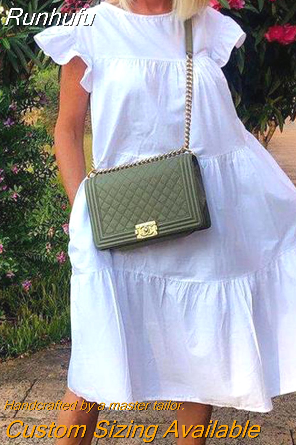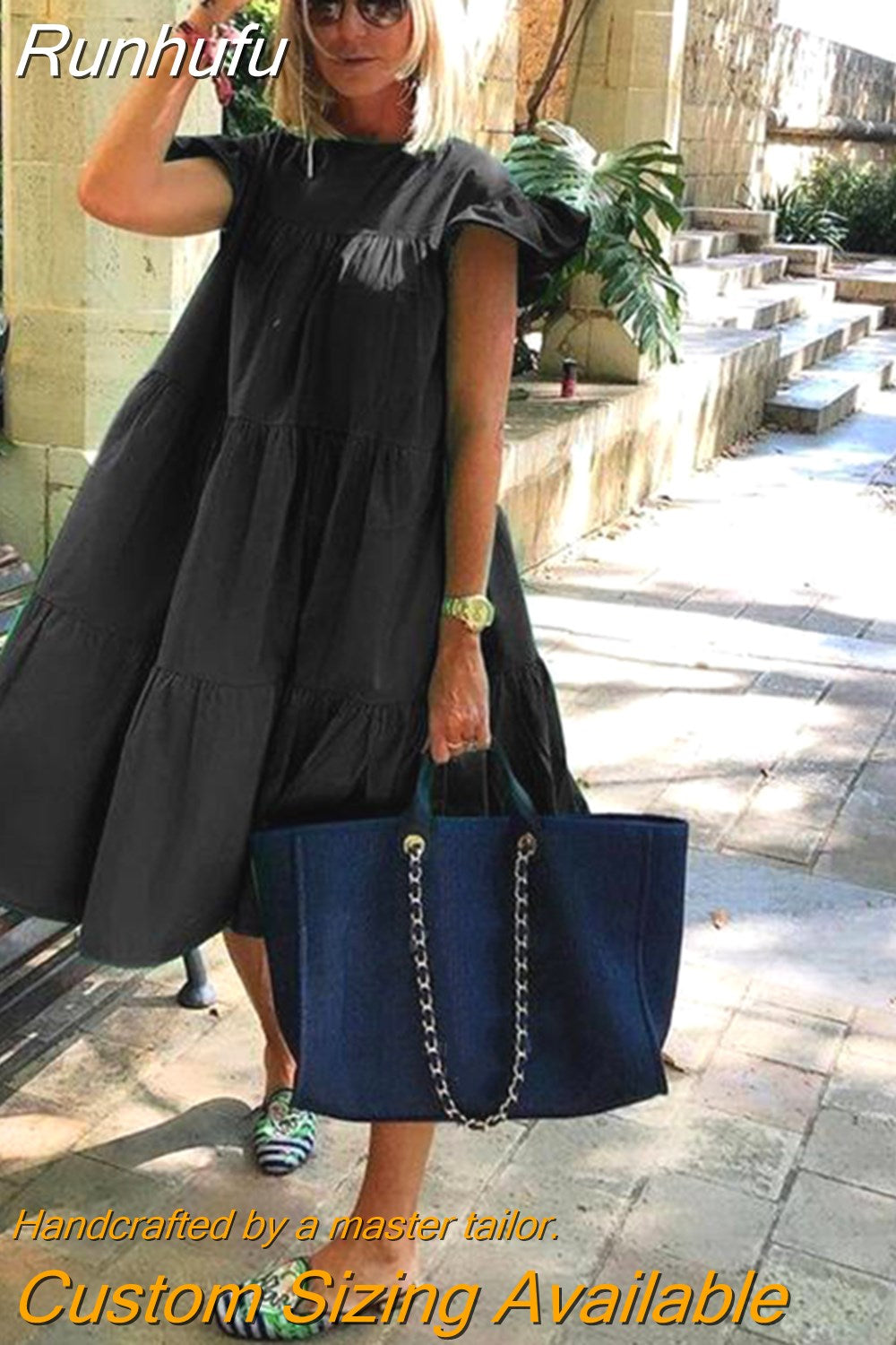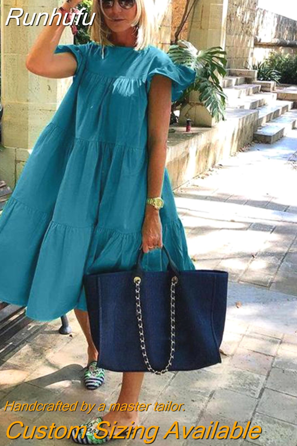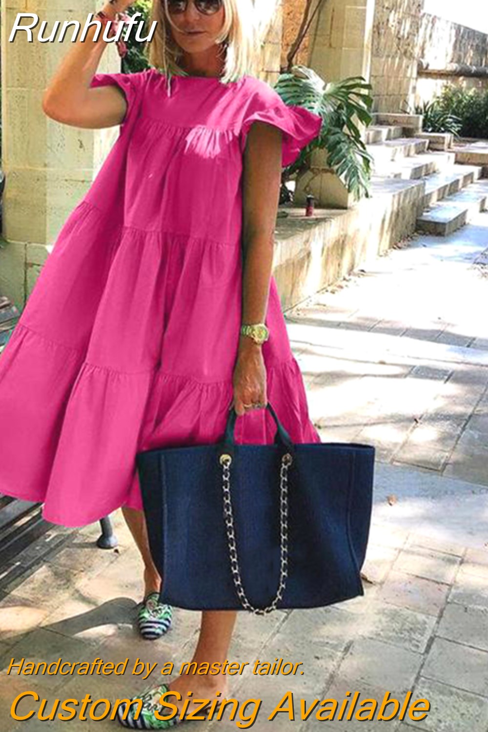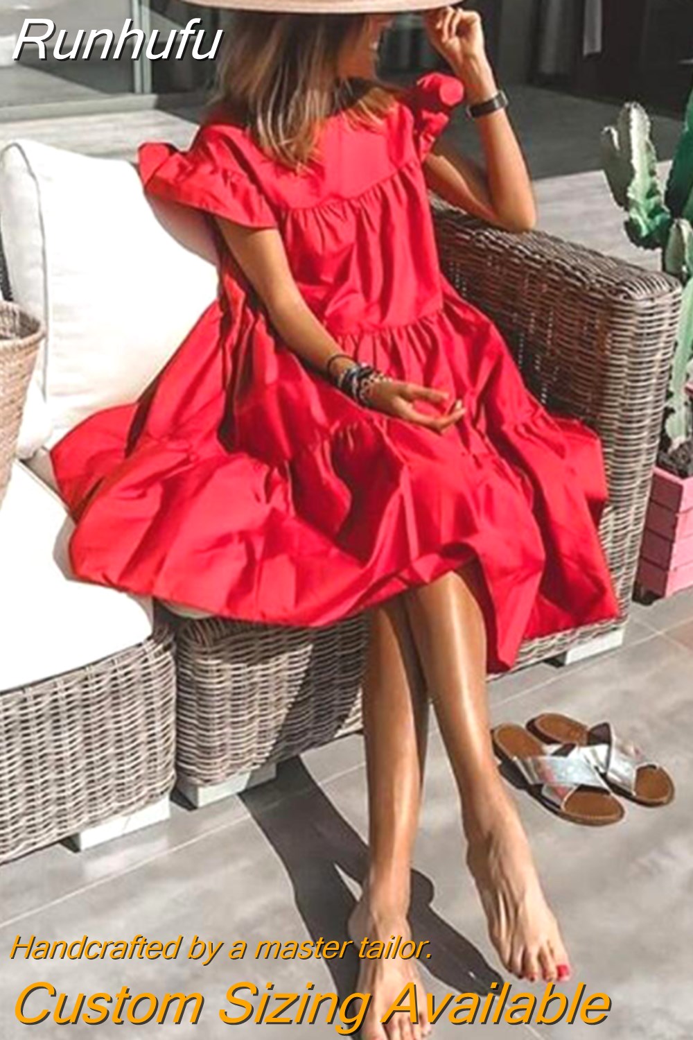 Runhufu Women's Summer Ruff Sundress Elegant Casual Party Beach Vintage Swing Midi Dress 2023 Solid Bohemian Oversized Vestidos Robe