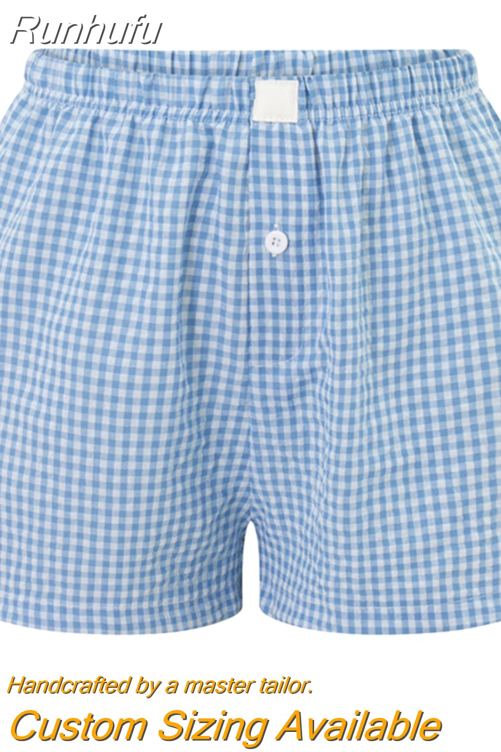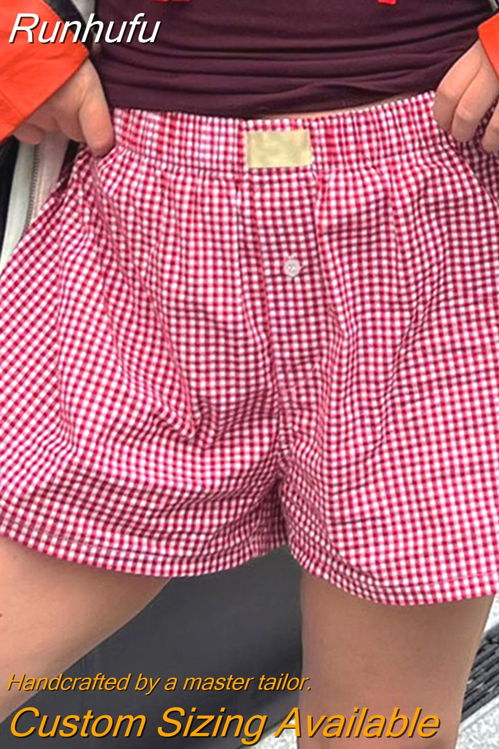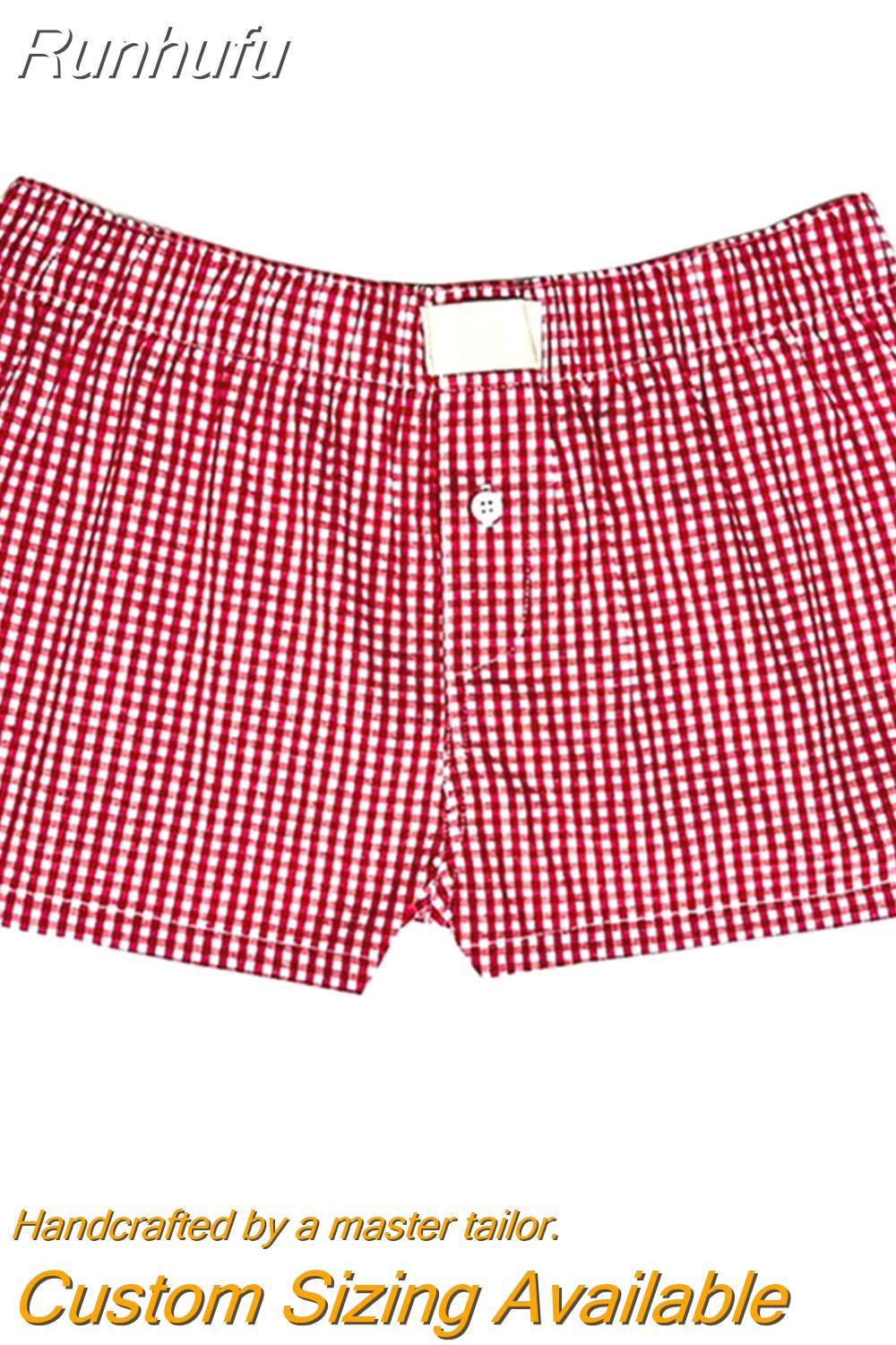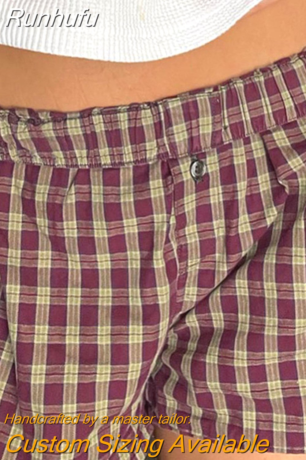 Runhufu Women's Y2k Pajamas Shorts Cute Plaid Pj Short Pants Flannel Lounge Sleep Shorts Bottoms Elastic Waist Baggy Boxers Tracksuit