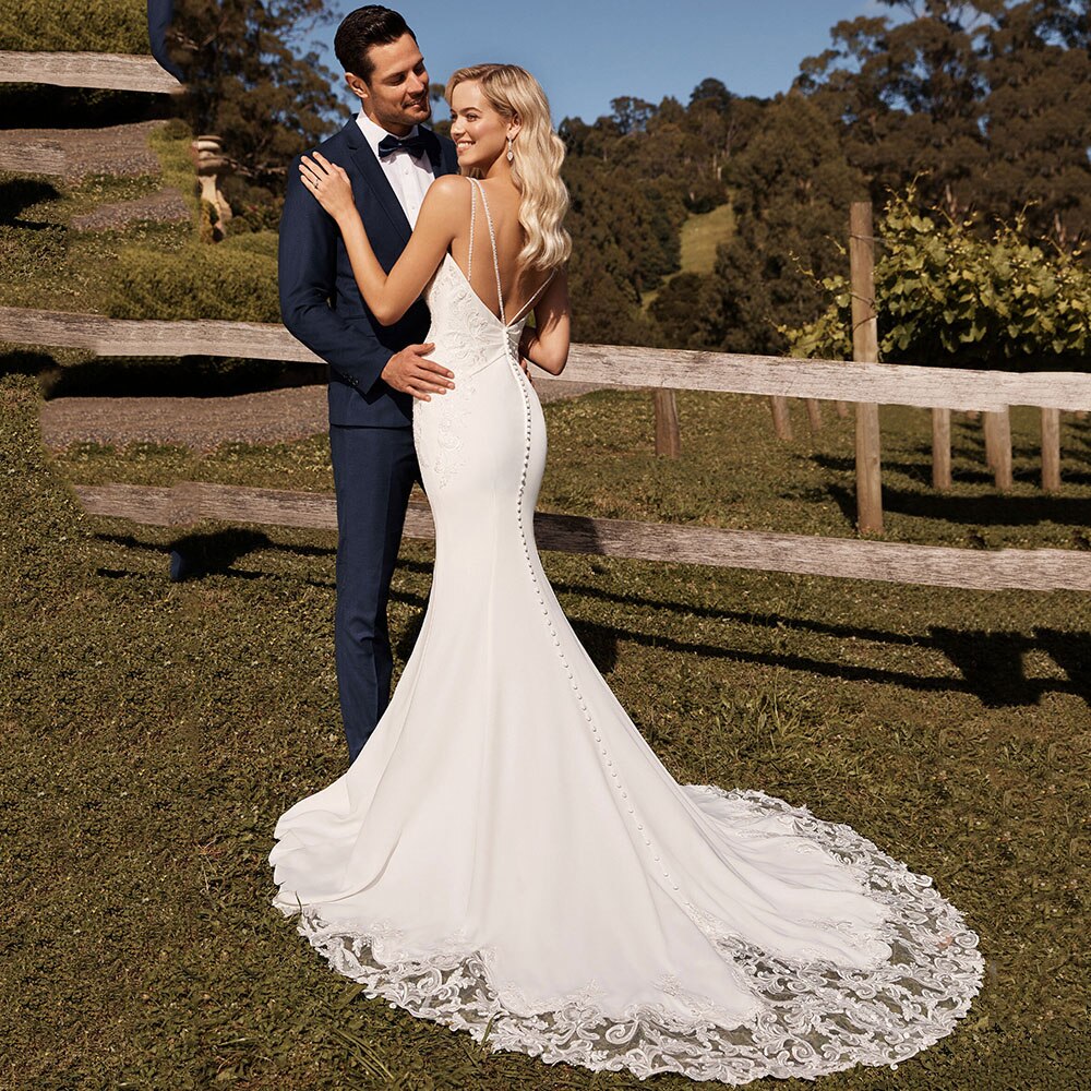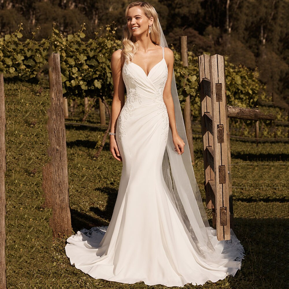 Runhufu YunShang Sexy V-Neck Wedding Dress Beading Spaghetti Straps Pleat Beach Mermaid Bride Gown Backless Train Vestido De Novia