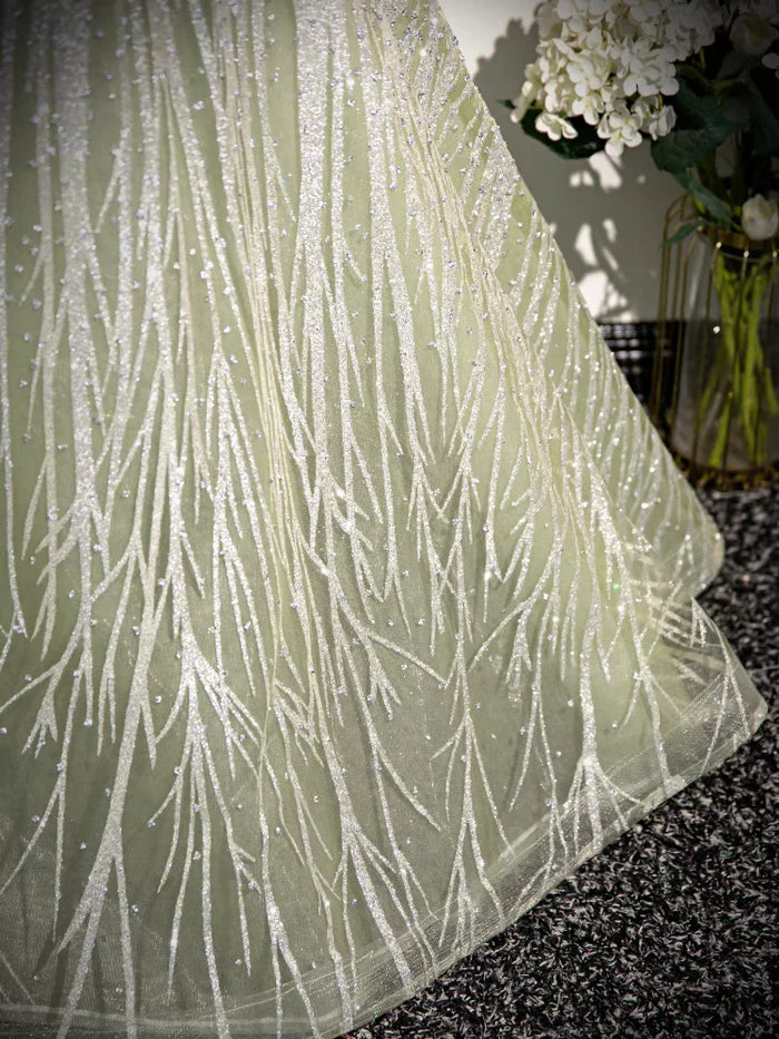 Sage A-Line Off the Shoulder Glittering Tulle Sequins Long Prom Dress Sweet 16 Dress HZ1108