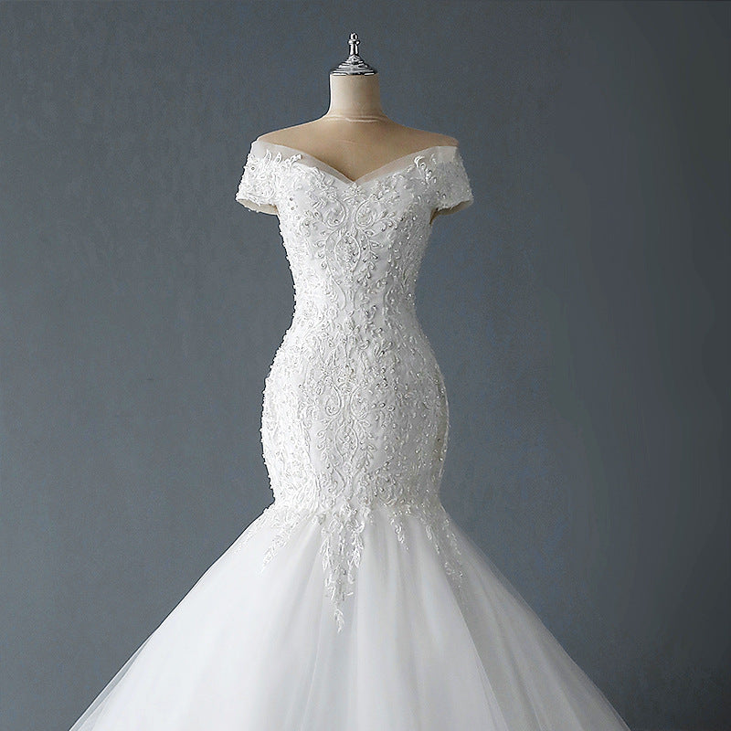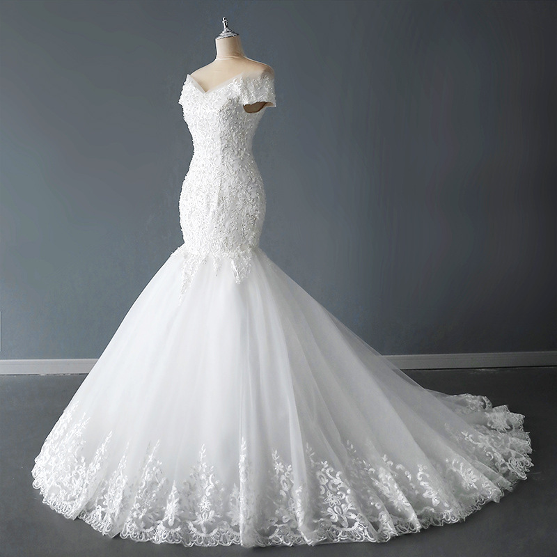 Summer New Wedding Dress Word Leakage Bridal Lace Repair Body With Snowflakes Tug Wedding Dress Supply