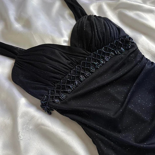 Indulge in a romantic night out with our Vintage Gradient Prom Dress. This stunning navy blue dress features a sweetheart neckline and delicate glitter chiffon detailing, perfect for any special occasion. With its one-of-a-kind vintage gradient design, you'll feel like a true work of art. Elevate your style and celebrate in luxury.